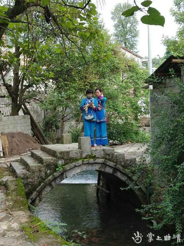 双龙潭的水流向田间,形成补掌河,一路水波荡漾,河流两边稻田碧绿。沿着补掌河边的石板路前行,空气清新,满眼碧绿,每隔一段路旁就有一块路牌,介绍水族歌谣。其中一首让我看了忍禁不俊:“郎想妹来妹想郎,二人想得脸皮黄;打开枕头给哥看,眼泪发芽三寸长”,比起“为伊消得人憔悴"这句名句,这相思描述得更入木三分。富源不是产棉地,过去农家的枕头用豆子或者荞子装成,遇潮就发芽,所以必须每年都要换掉豆子或者荞子。豆子天天被眼泪浸泡,会不会发芽,这个我就没考证过了。不过,这反映了当时富源本地缺棉花,做枕头用的填充物是粮食作物。