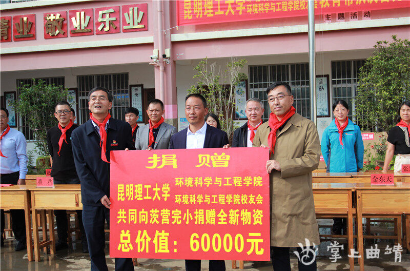 掌上曲靖讯(曲靖日报记者 陈丽娟)9月11日下午,宣威市羊场镇茨营完小格外热闹,昆明理工大学环境科学与工程学院的老师和校友们来到茨营完小,与小朋友们交流互动,还给他们带来了打印机、饮水机、文具、被褥等学习生活物资,总价值6万余元,进一步帮助茨营完小改善教学条件。