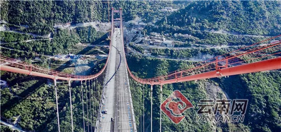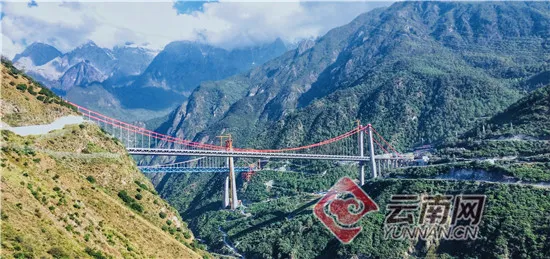 虎跳峡金沙江特大桥是香丽高速公路技术要求最高、施工难度最大的重点控制性工程,大桥全长1017米,桥面距江面260米,主桥为766米独塔单跨地锚式钢桁梁悬索桥。