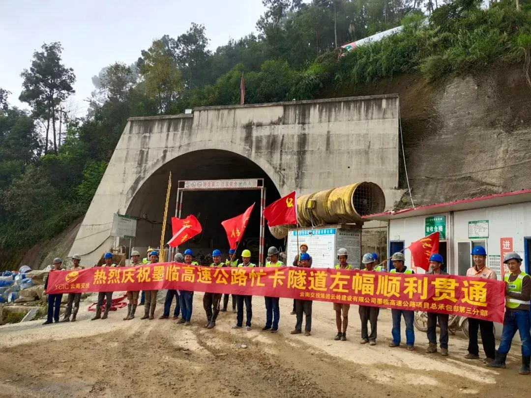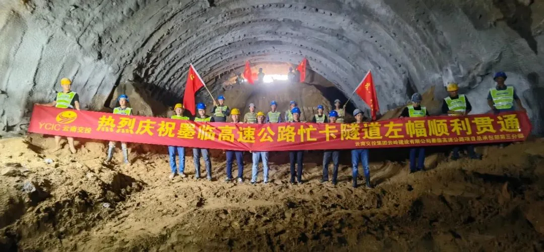 11月8日,墨临高速公路控制性工程忙卡隧道左幅顺利贯通。忙卡隧道为分离式长隧道,全长1220米,最大埋深90.25米。忙卡隧道左幅的顺利贯通,进一步改善了工地现场的运输条件,打通了师家寨和王家村两个施工区域的通道,为后续的路面施工创造了有利条件。