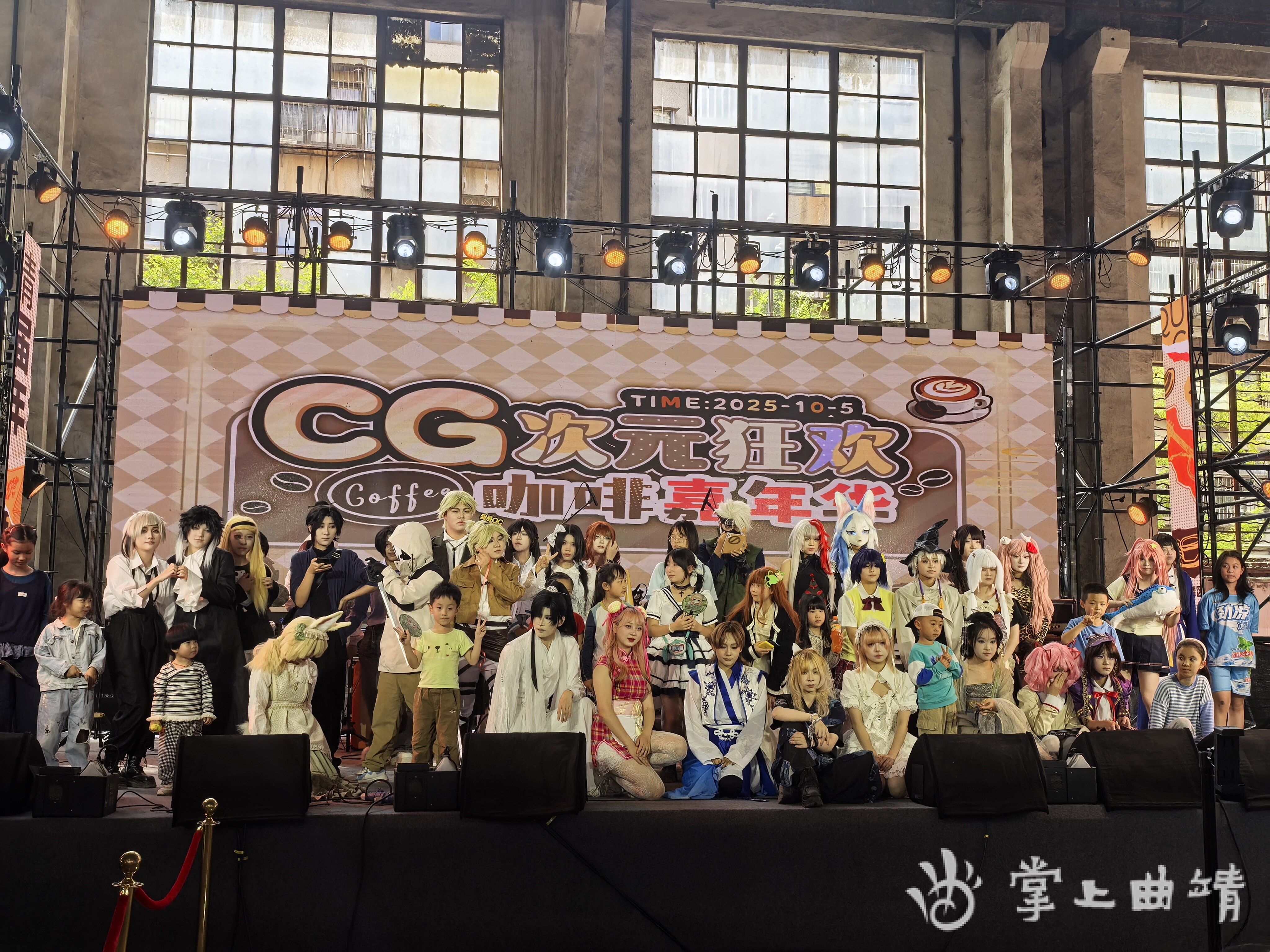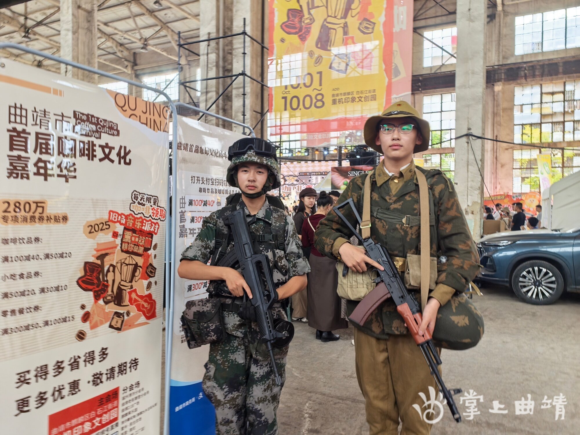 10月5日,曲靖重机印象创意园格外火爆,100余位cosplay爱好者身着精致服装,穿梭于咖啡香气之中,吸引着现场游客的目光。