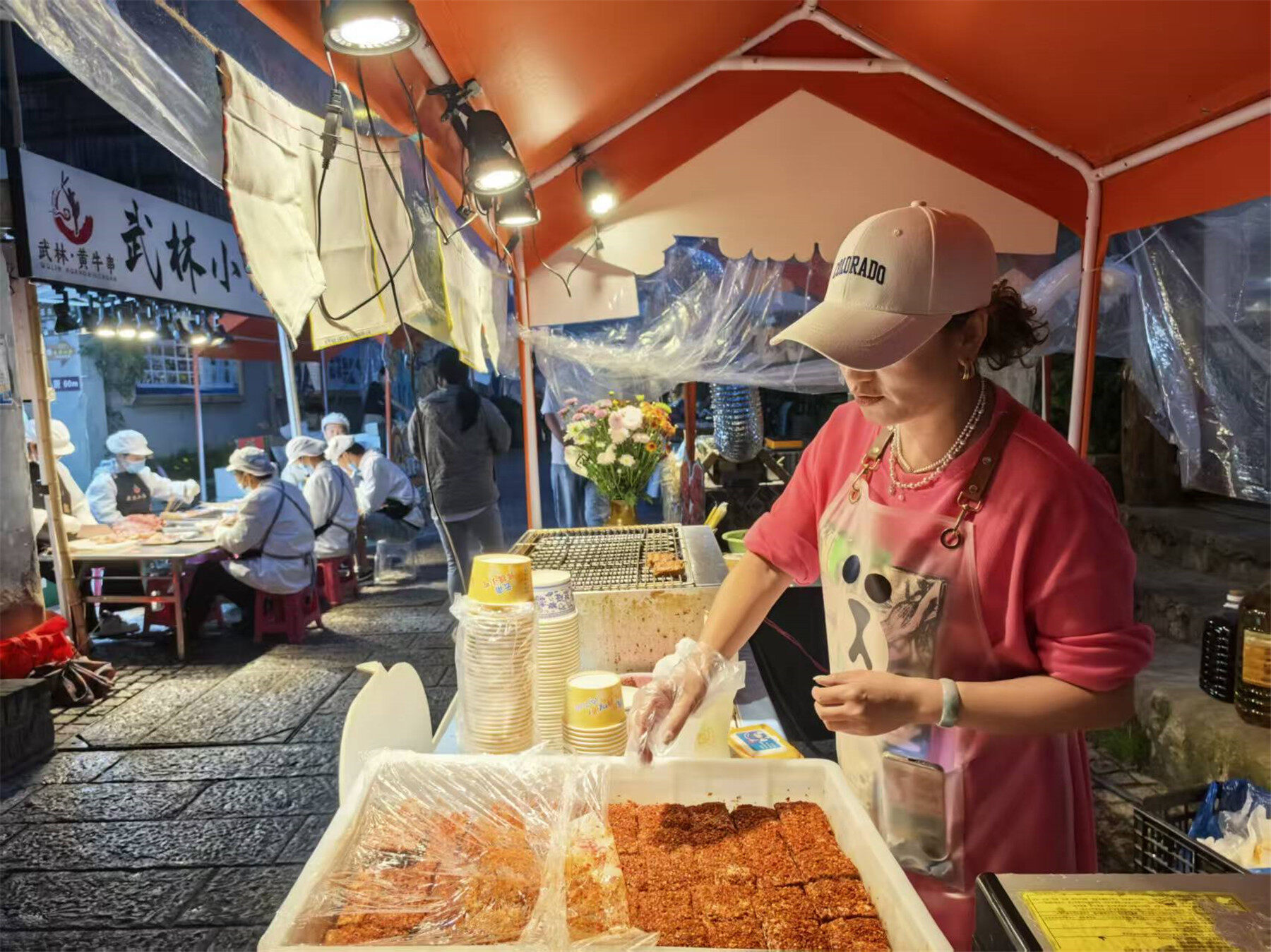 中秋佳节,杨殊蔓的摊位前,围满了品尝购买基诺豆腐的顾客。她一边熟练制作着美食,一边与顾客们聊着天,分享着中秋的喜悦。看着客人吃到地道美食的惊喜笑容,杨殊蔓感叹道,“今天是我第三次来到曲靖老街,我在这个有腔调的老街中感受到了曲靖人民的温度,大家在这个团圆的日子相聚在一起。”在人间烟火的味道与“新”“老”共生的生命力中,在老街,杨殊蔓看到了这个中秋最热闹的团圆。