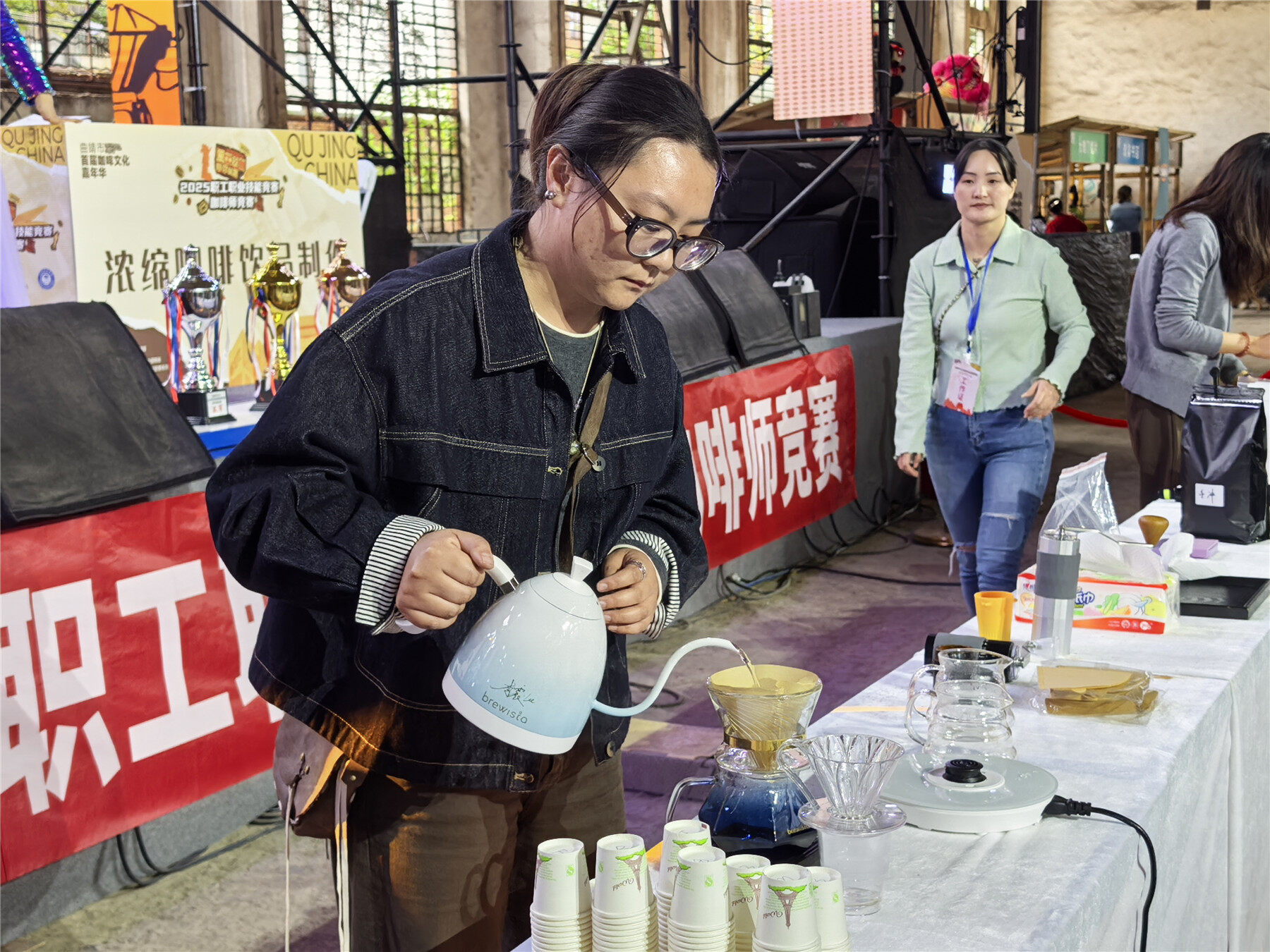 在曲靖重机印象文创园里,咖啡的热气早已沸腾,首届咖啡文化嘉年华“1对1精品咖啡冲煮挑战赛”正在火热进行,这里的氛围比刚冲出来的咖啡还要烫。