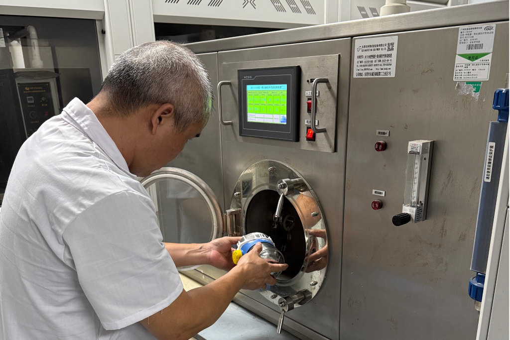 图为工作人员在进行过滤式消防自救呼吸器一氧化碳防护性能试验。(广州质量检验研究院供图)