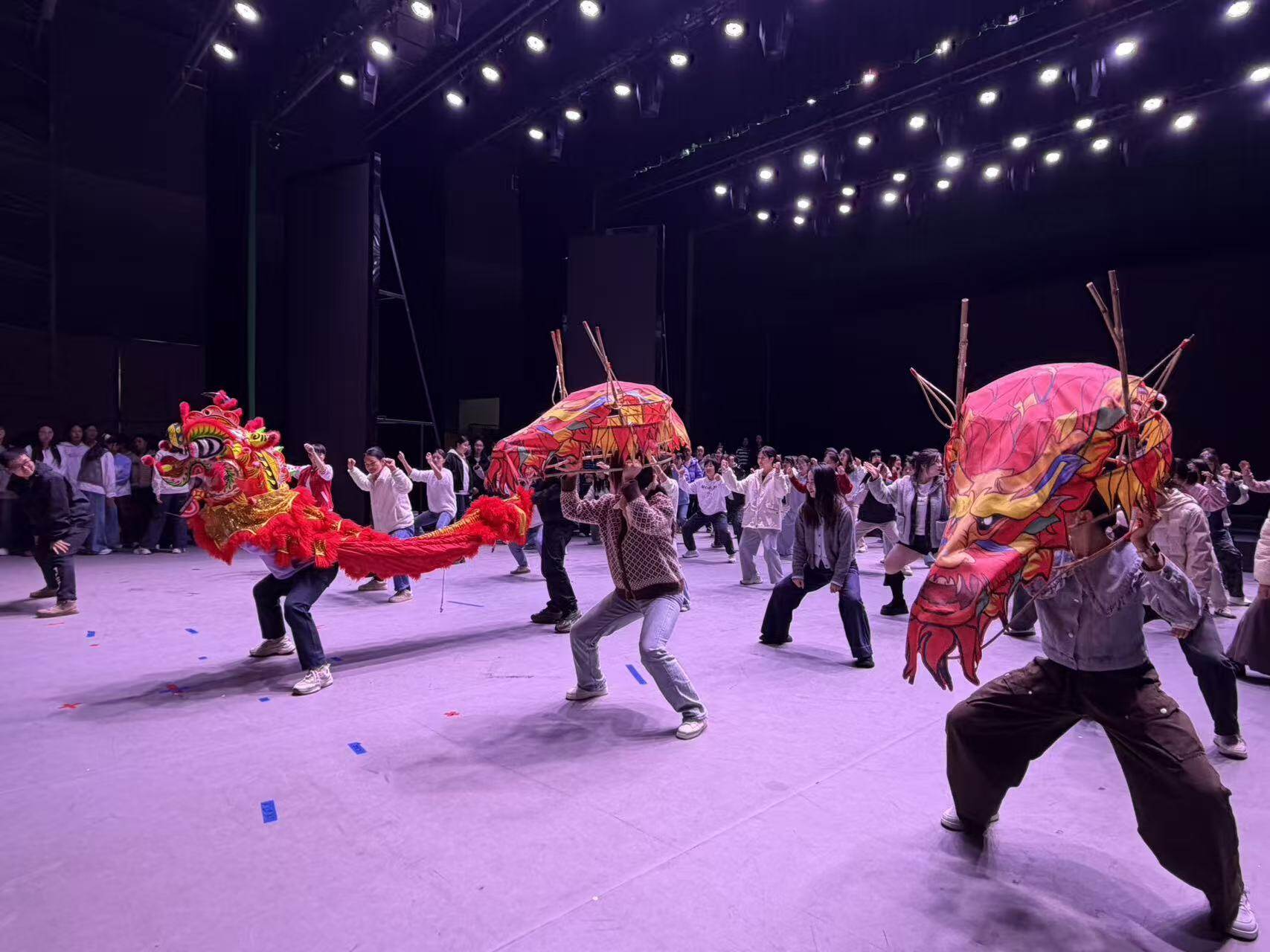 彩排现场鼓乐铿锵,志愿者们在市级非遗传统舞龙技艺代表性传承人何健的指导下,分组演练麒麟点睛、腾跃翻滚、拜八方等经典招式,一招一式刚劲灵动,队形变换有序推进。大家精神饱满、认真投入,反复抠细节、磨配合,重点强化动作协调性与队形衔接度,力求以最佳状态完成首日排练任务,为后续的集中训练和正式展演筑牢基础。