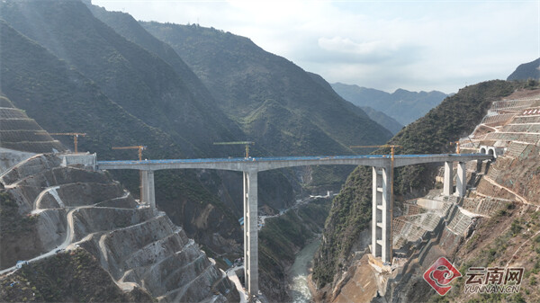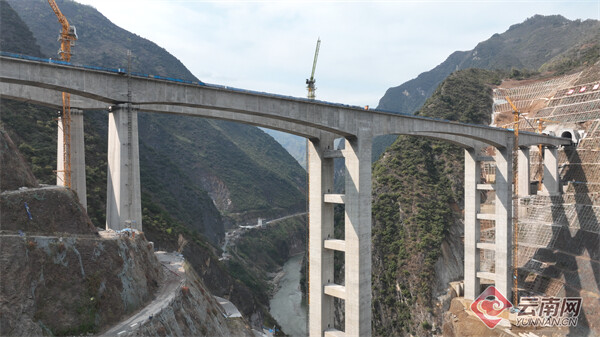 3月25日建设中的渝昆高铁洛泽河特大桥。