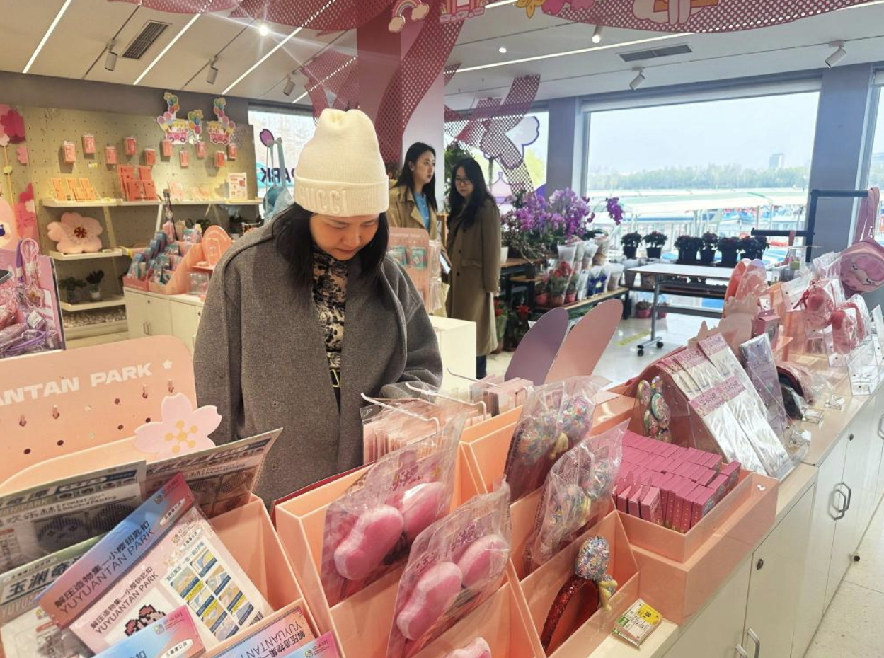 游客在北京玉渊潭公园文创店内挑选商品。新华社记者杨淑君 摄
