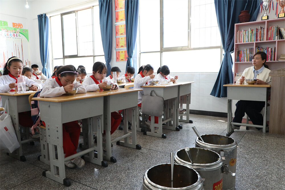 一年多来,学校严格执行国家每名学生每天五元的营养膳食补助标准,为全校2000余名学生足额供应完整午餐热食,确保每一笔补助资金都用在学生身上。结合本地时令食材供应实际,学校明确每餐食材种类、用量及营养配比,坚持荤素搭配、营养均衡,保证一周食谱不重复。