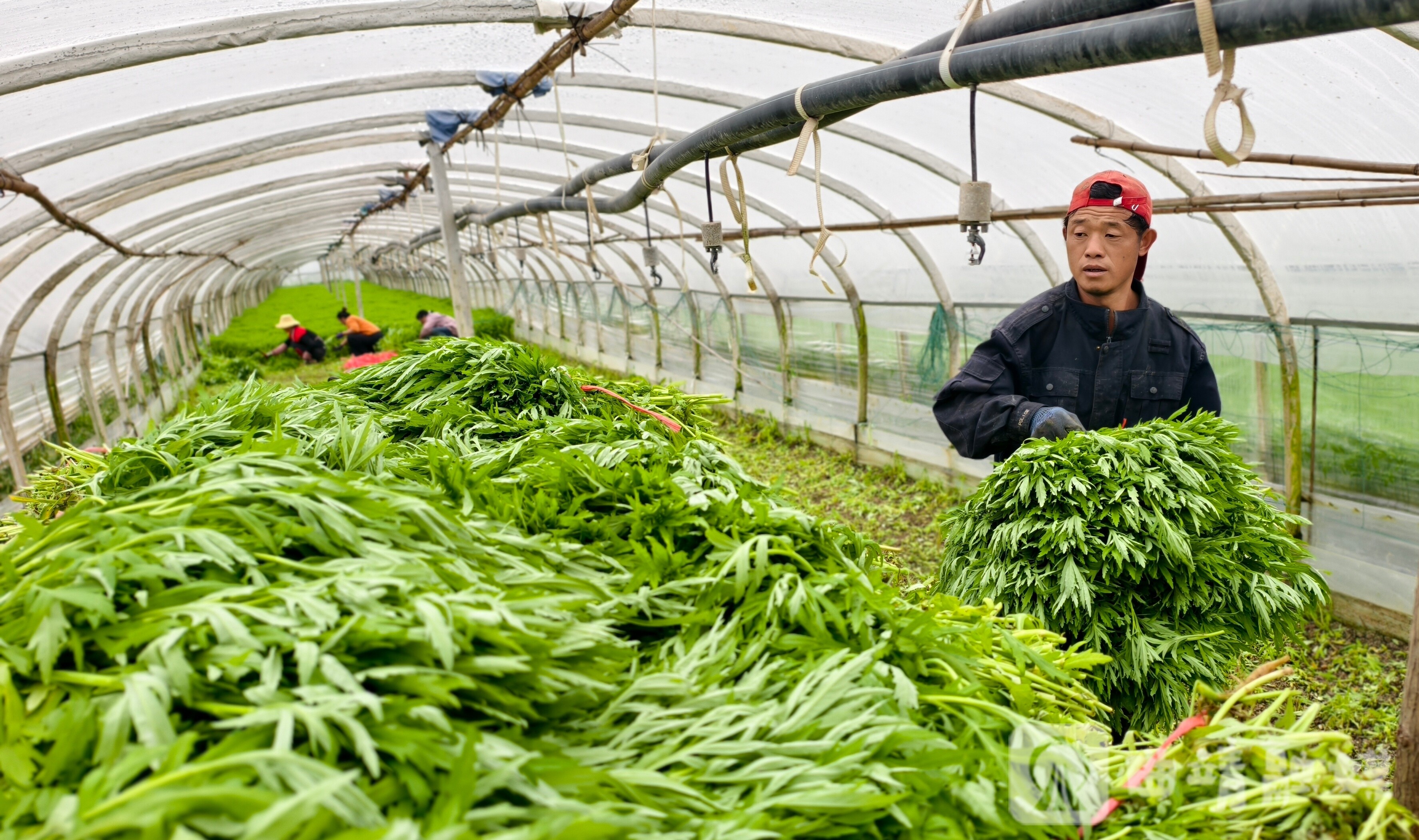 在云南诗欧农业科技有限公司的种植基地里,银发老人们正熟练地进行着分拣、打包。57岁的李大妈一边麻利地整理着藜蒿,一边向记者分享着喜悦:“现在在家门口的大棚里干活,每天能挣近100元,赚来的钱既能补贴家用,还能给孙男孙女买零食,日子过得越来越踏实。”