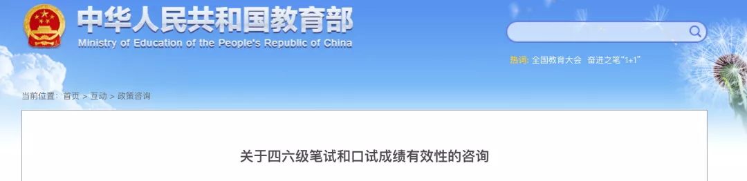 在教育部官网政策咨询栏目中,有人对“四六级笔试和口试成绩有效性”进行了咨询: