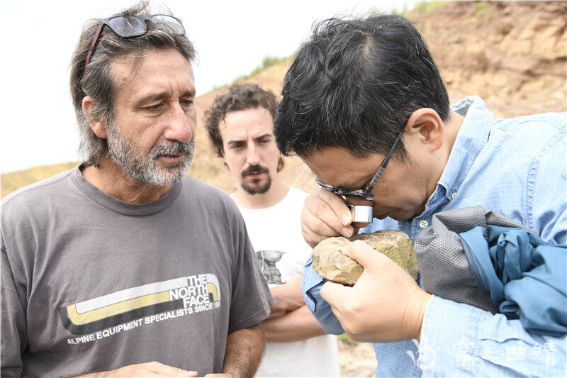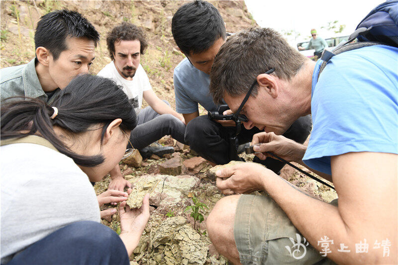 当天,考察团首先来到位于麒麟区的刘家冲进行地质考察,科学家们从岩石组成、基本层序、产出特征等专业地质研究角度进行分析交流,通过各岩层特征反演当时的沉积环境,并与位于麒麟区石灰窑村的潇湘动物群作出异同对比。