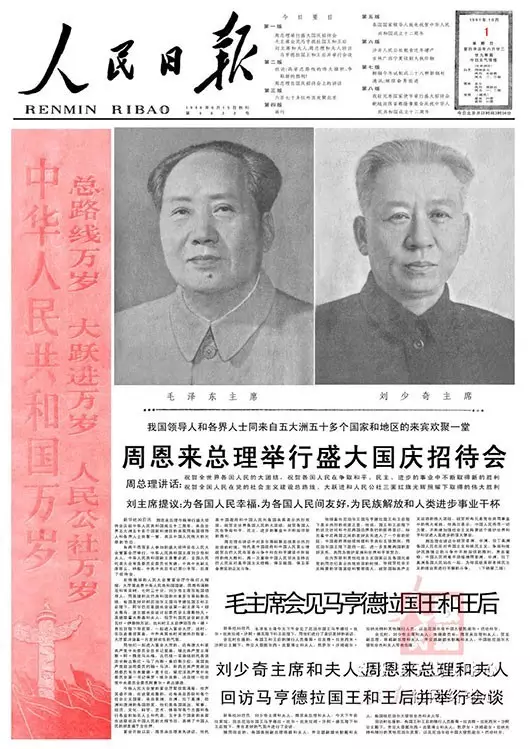 1959-1965年的国庆日均刊登毛泽东与刘少奇的标准像。