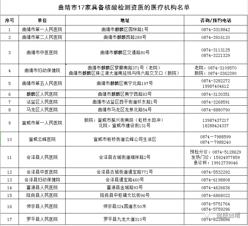 曲靖市新冠肺炎疫情防控工作指挥部,电话0874-3123136。