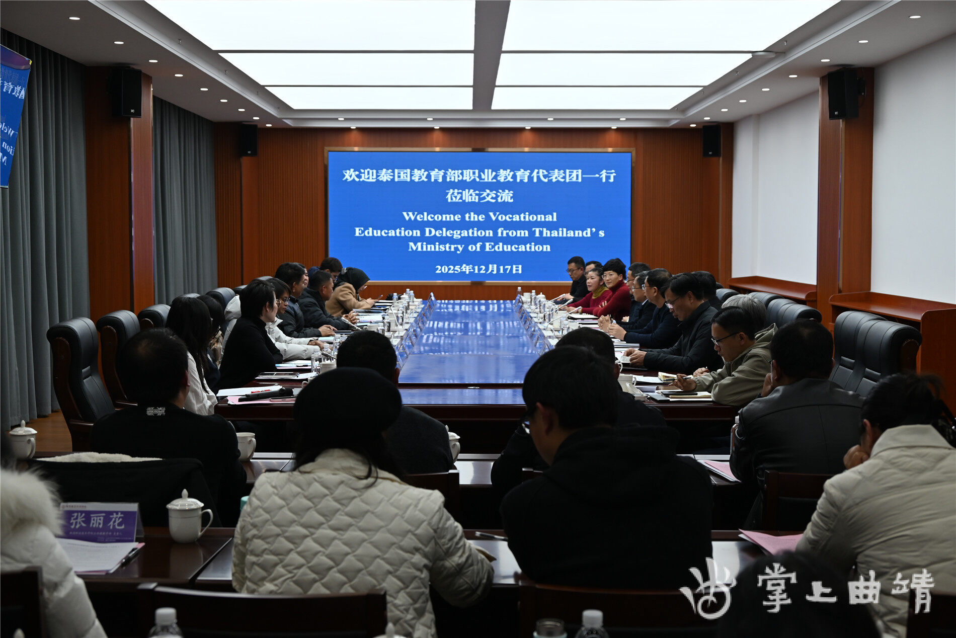 曲靖融媒讯 近日,泰国教育部职教代表团一行13人到曲靖职业技术学院,与云南省东南亚研究会、曲靖市和麒麟区相关部门负责人开展座谈交流,共谋职业教育合作发展。