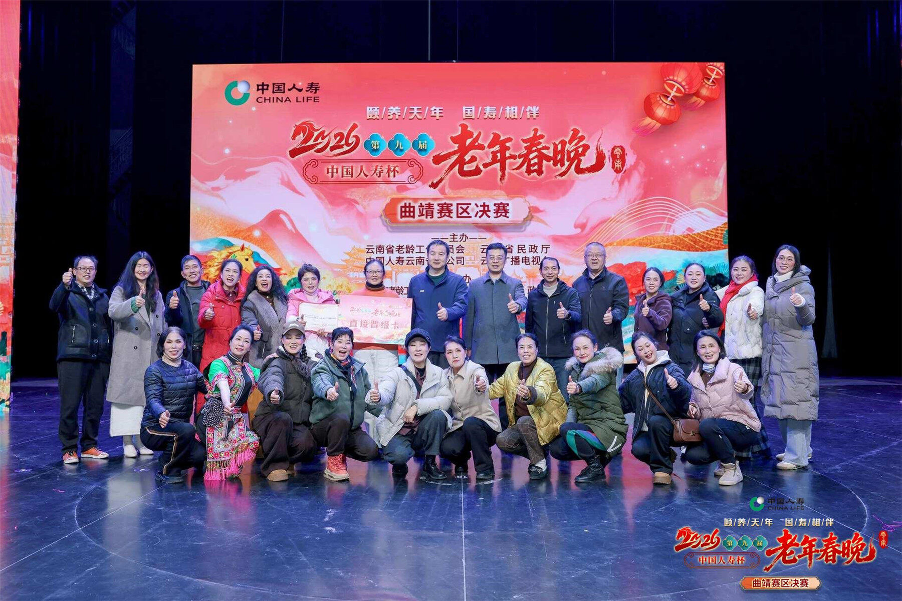 曲靖融媒讯(记者 张亚玲 王益)新春将至,曲靖的老年朋友们迎来专属春晚。1月28日,第九届“中国人寿杯”老年春晚曲靖赛区决赛在曲靖市融媒体中心演播厅圆满落幕,来自全市各(县、区)的12支老年文艺队同台比拼,唱跳走秀样样精彩,把曲靖老人的精气神展现得淋漓尽致,现场观众赞叹不已。