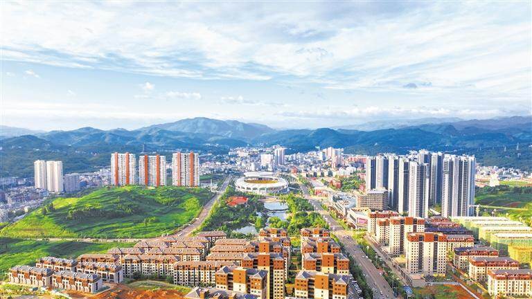 滇东山城,热潮涌动。市民群众俯瞰富源县城,群山环绕间,宜居宜业宜游的新城拔节生长,见证着家乡从“煤城旧印”到“山水绿城”的华丽蝶变。