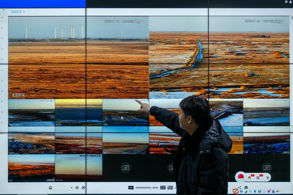 在黑龙江省扎龙国家级自然保护区管理局监控中心,湿地监测的实时画面由十几个分屏组成,屏幕上闪烁的光点是分布在湿地里的热感设备,可及时捕捉违法违规活动等异常热源,第一时间预警和处理。