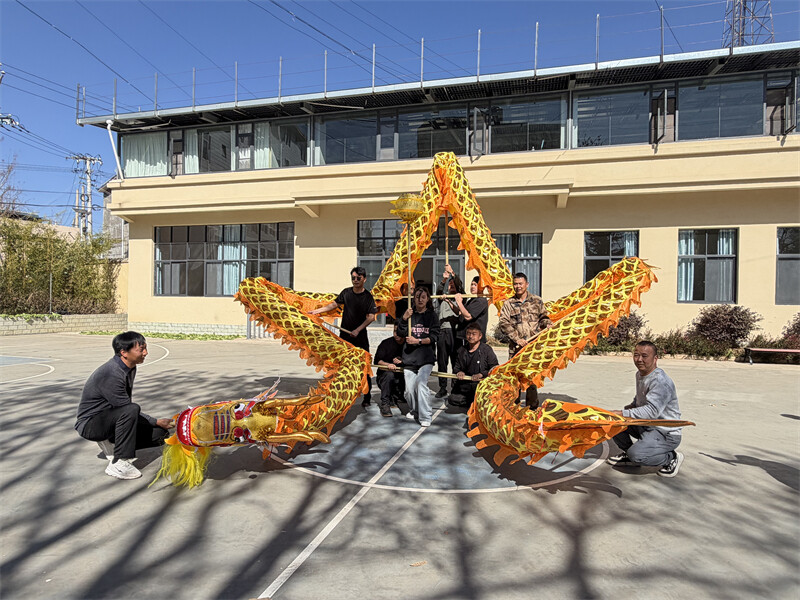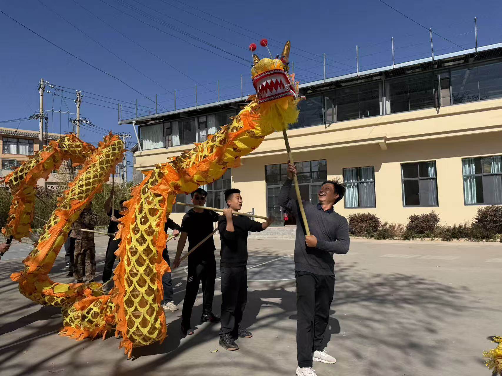 训练场上,鼓点越敲越响,明黄的龙身在阳光下熠熠生辉,时而舒展如长虹贯日,时而蜿蜒如九曲回廊;彩色狮头灵动可爱,摇头摆尾间尽显喜庆。距离春节仅剩半月,训练进入冲刺阶段,队员们放弃休闲时间主动加练。村委会已配备专业道具,明黄龙身镶嵌金色纹路,狮头采用传统工艺缝制,何健每周定期指导,从动作到编排全方位培训。
