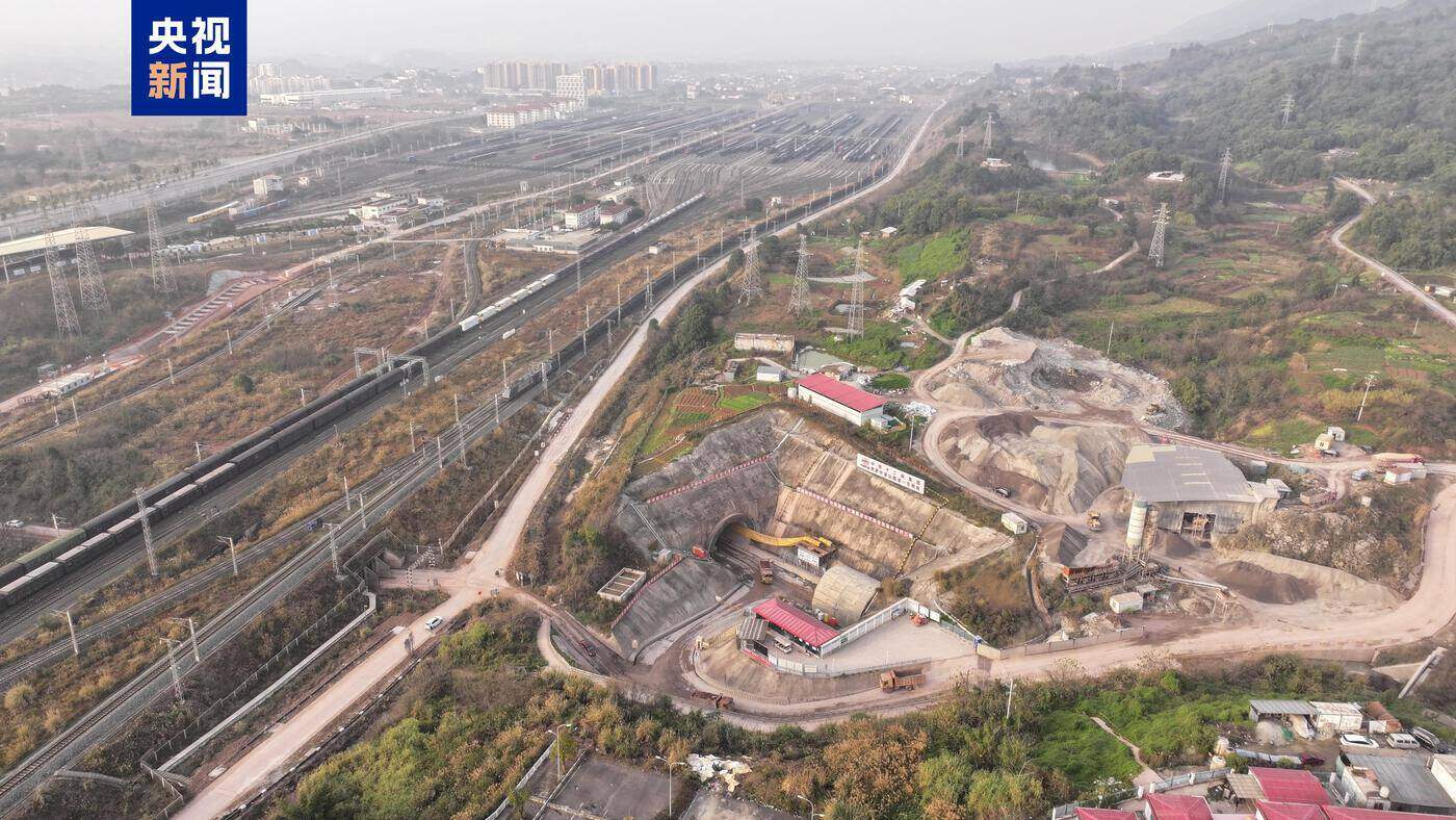 中梁山隧道全长6500米,为单洞双线隧道,共下穿西南地区规模最大编组站——重庆兴隆场编组站18股道,长约565米,距离地面最小距离仅7米,面临地面沉降、浅埋、作业时间苛刻等诸多挑战,为全线建设重点瓶颈工程。施工方介绍,中梁山隧道在下穿兴隆场编组站南机5线时,采用32米D型便梁成功架设,创造了西南地区同类便梁架设的首次纪录。