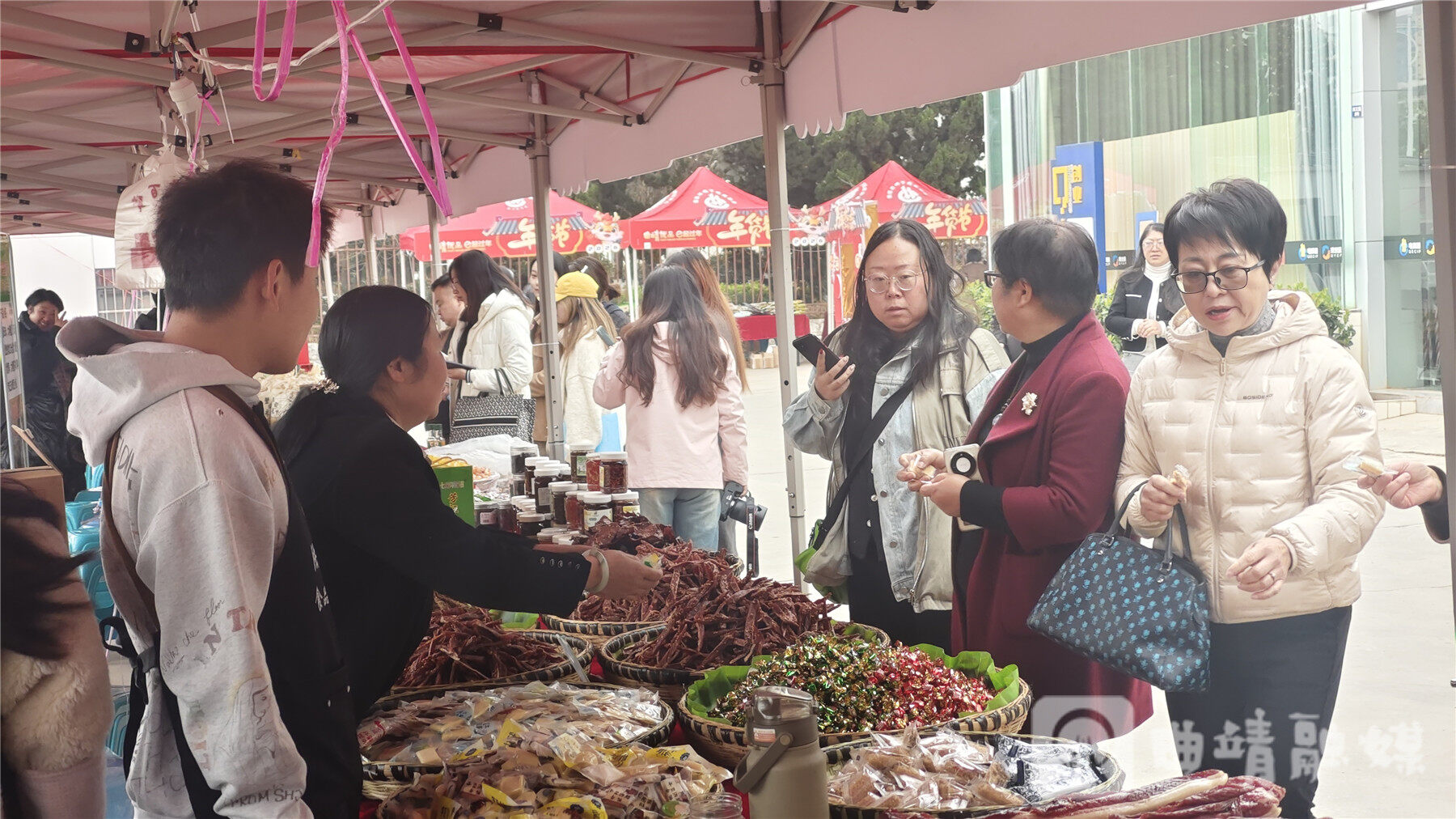 活动期间,市民参与热情高涨,既可以前往线下年货节一站式采购优质年货,也能通过线上直播间参与互动抢购,享受多重优惠福利。“今天这里特别热闹,来参加这个年货街,能买到小黄姜、紫皮大蒜、马龙苹果、宣威火腿、大河乌猪这些家常好物,一站式购齐特别方便,价格也比平时实惠不少。”市民杜娟笑着说,线上直播间的抢购活动也让她格外心动。