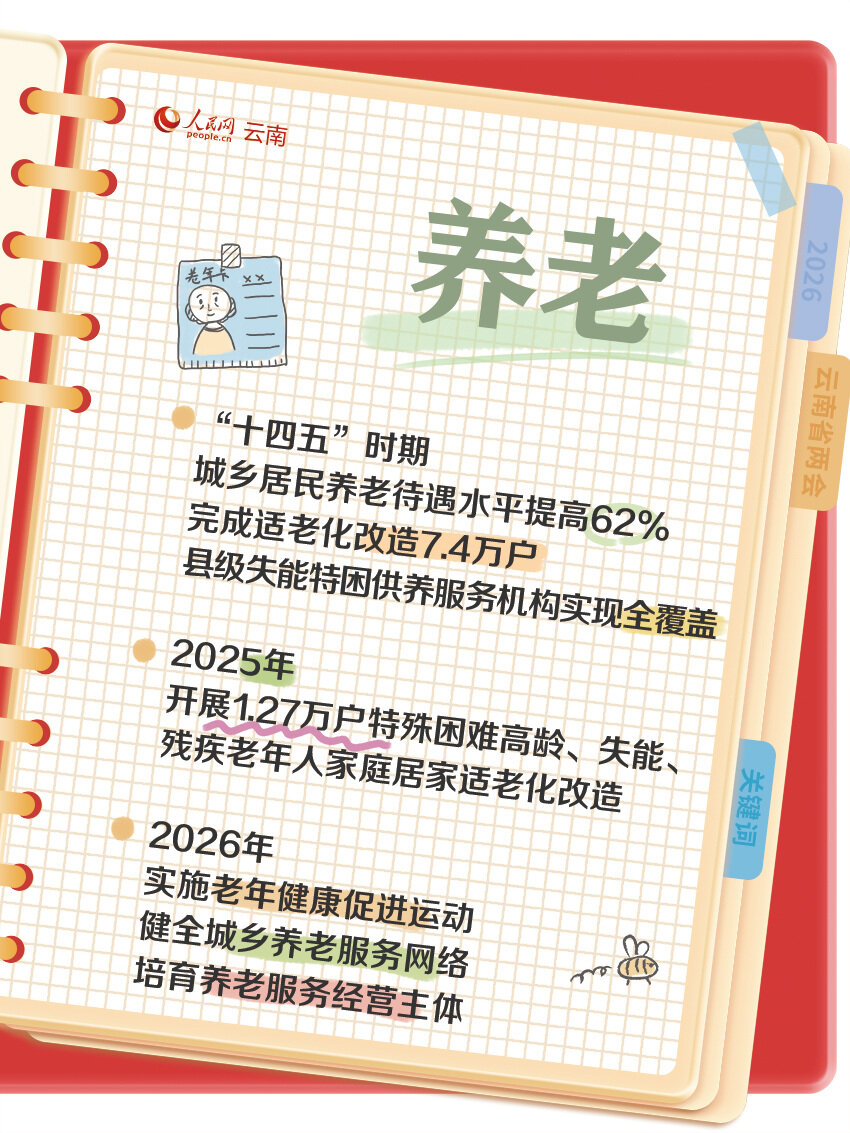 翻开云南省2026年政府工作报告,一本沉甸甸的“民生手账”跃然纸上。从收入增收到住房安居,从就业帮扶到养老保障,从教育提质到医疗惠民,每一组数据都凝聚着对民生的深情牵挂,铺展成云南人民幸福生活的温暖画卷。
