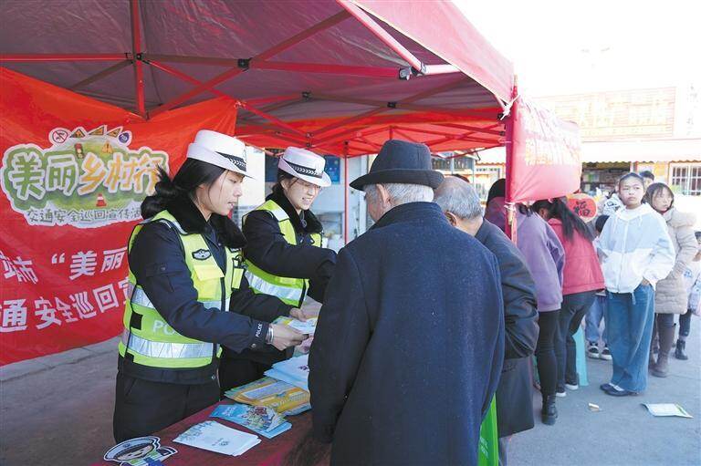 惠民演出结束后,志愿服务活动随即开展:书法爱好者挥毫泼墨写春联,让群众近距离感受中华优秀传统文化的独特魅力;医护人员免费为群众量血压、测血糖,向群众普及健康知识,现场解答群众提出的健康问题;相关部门工作人员开展“交通安全+消防安全”普法宣传,向群众发放宣传资料,用通俗易懂的语言为群众解读惠农政策。