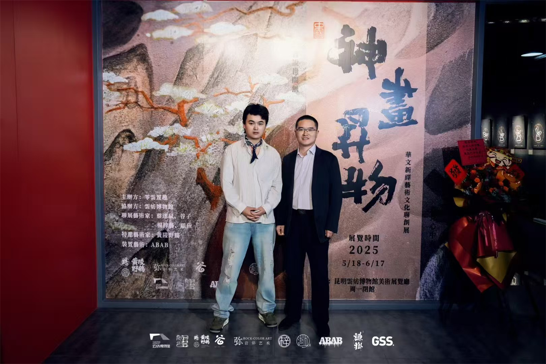 2023年9月,蔡迷鼠受邀参加腾冲“故乡的画卷”壁画艺术节,与搭档以腾冲皮影戏为灵感创作《戏出东方》:画面里,老者向汉族小男孩、傣族小姑娘展示皮影,身披金甲的齐天大圣从光影中走出—这幅画不仅是东方美学的表达,更藏着“中华民族一家亲”的深意。2022年至2025年,他带队与多名艺术家耗时三年,在新疆库尔勒创作888米长、5.5米高的《大美新疆 祖国大好河山》壁画,帕米尔雪山、巴音布鲁克草原与万里长城、黄河泰山在画中相融,最终斩获世界纪录认证(WRCA)“世界最长中国画山水壁画”称号,成为“行走的思政课堂”,将国画技艺传承与爱国主义教育深度融合。2025年“5·18国际博物馆日”,他的《法海寺四大天王》亮相昆明云纺博物馆“神画昇物”联展,让岩彩艺术从乡村走向更广阔的舞台。