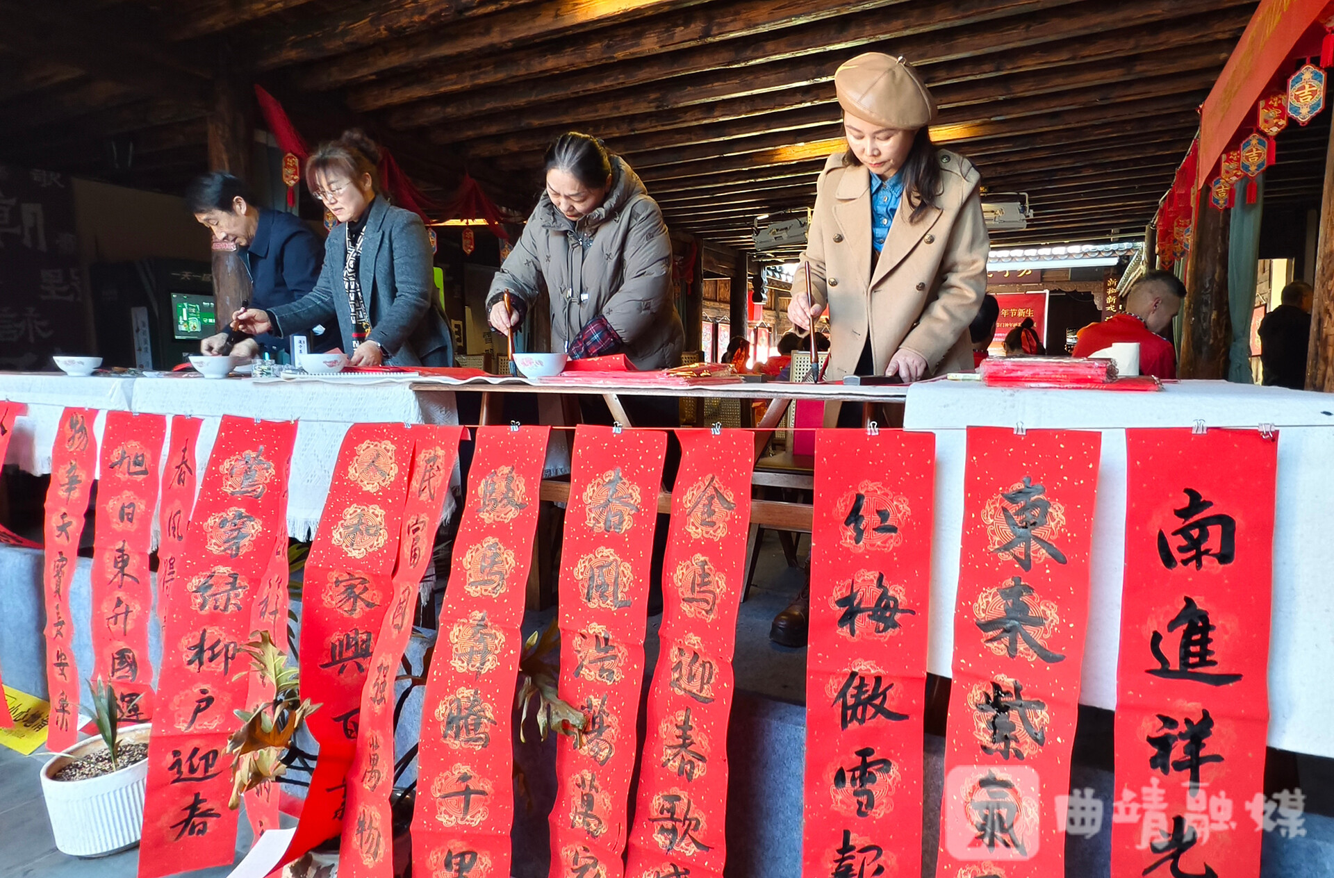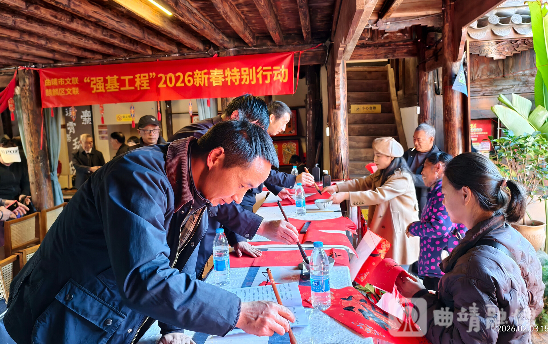 展览现场麒麟区文联的12位书法大师现场挥毫泼墨,一幅幅寓意吉祥的福字、对联接连诞生,“马上有钱”“马上有福”“马上有财”等贴合马年的作品,将笔墨书香与新春祝福融为一体,引得市民争相领取。与此同时,曲靖市民族文化艺术团带来的精彩文艺演出轮番上演,与展厅内的年画交相辉映,让清风剧场的年味愈发浓郁,实现了“观年画、品年味、赏文艺、迎新春”的多重体验,据悉,本次展览持续至2月14日。
