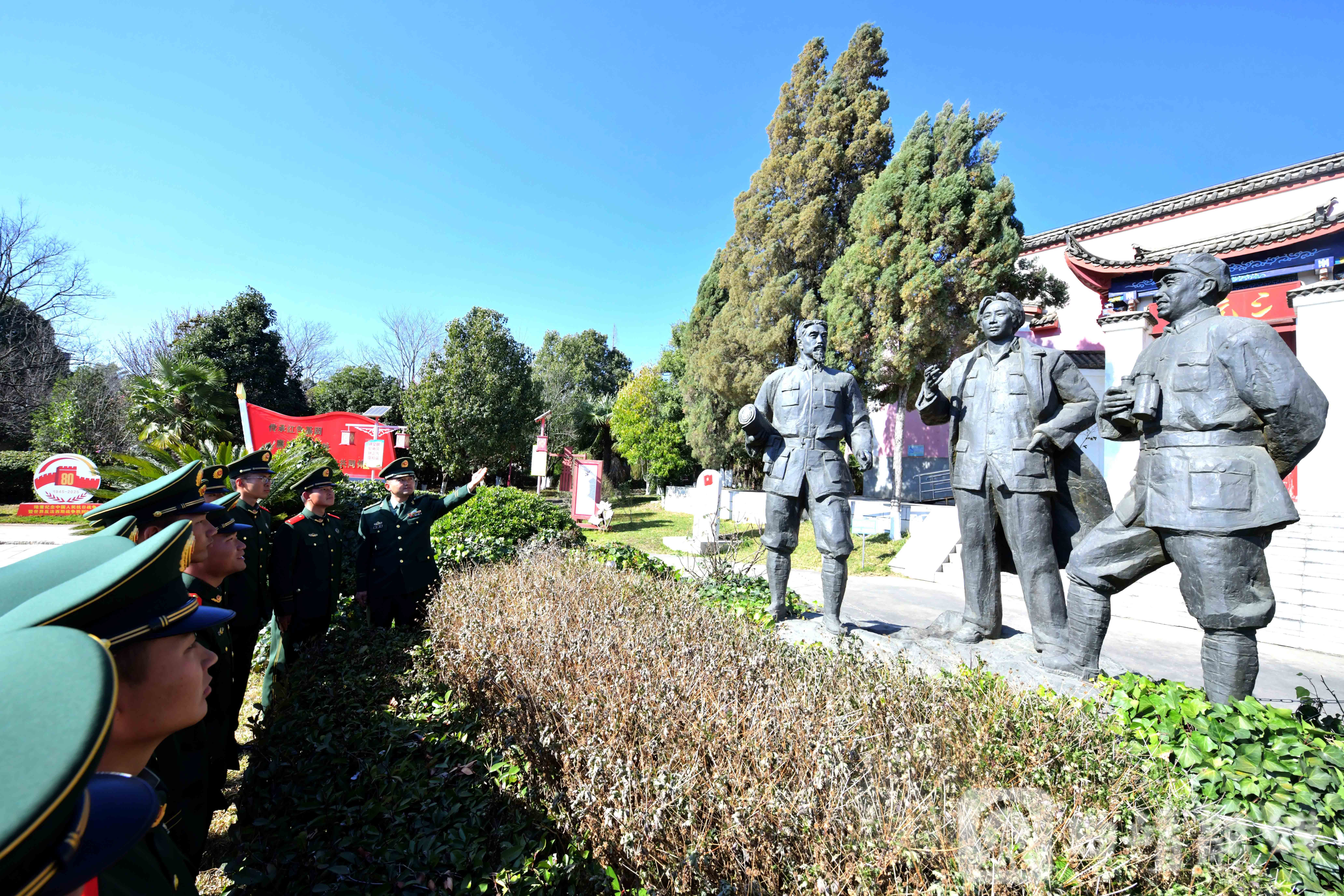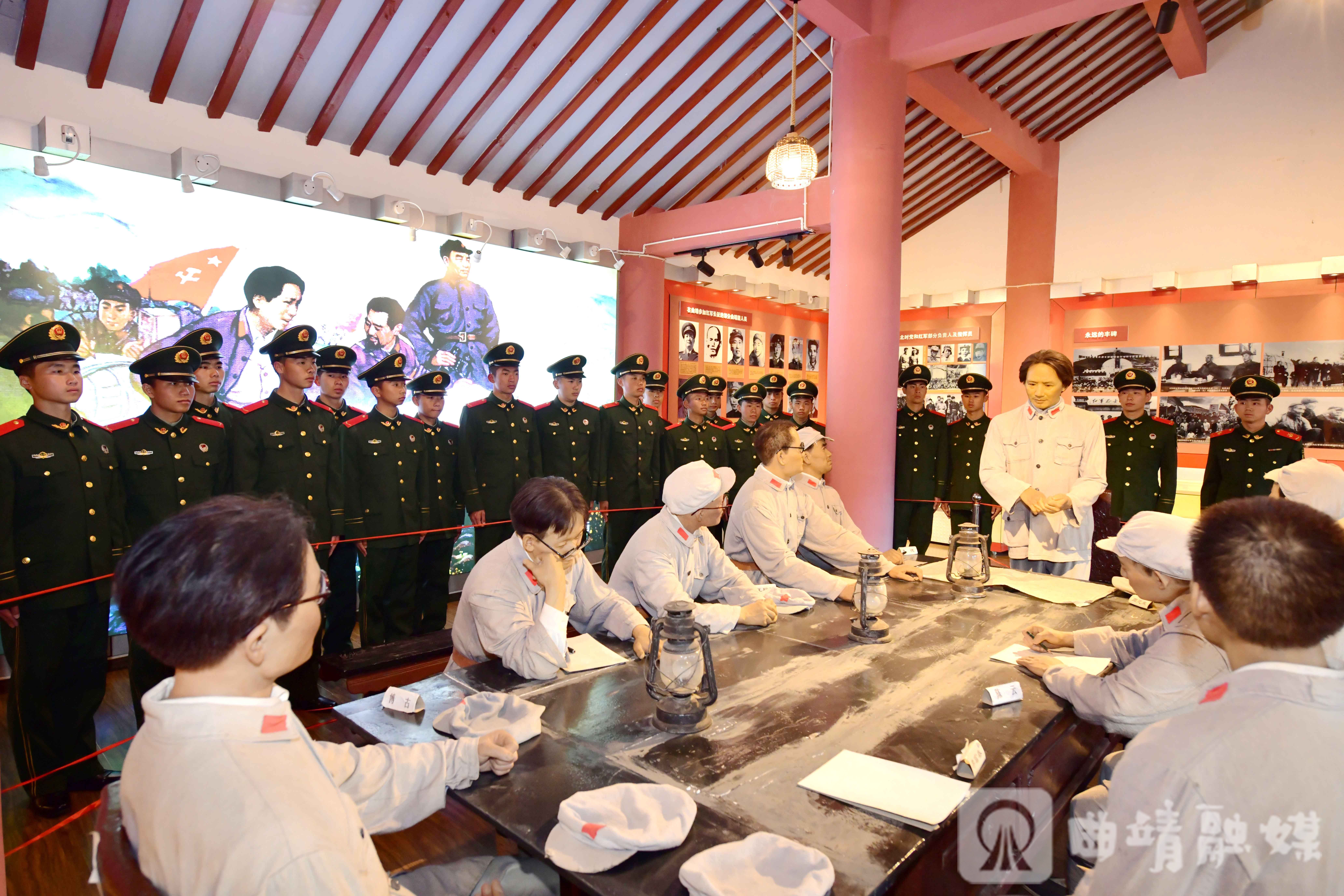 随后,新兵们前往“三元宫会议”红军长征过曲靖遗址开展实地教学。在这座清光绪年间建成的古朴院落中,1935年中央红军曾召开重要会议,为革命事业指明了前进方向。简陋的桌椅、斑驳的油灯、褪色的标语,将厚重的历史拉至眼前,新兵们仿佛回到了那个决定革命前途的关键时刻,在身临其境的体验中深刻感悟理想信念的磅礴力量。
