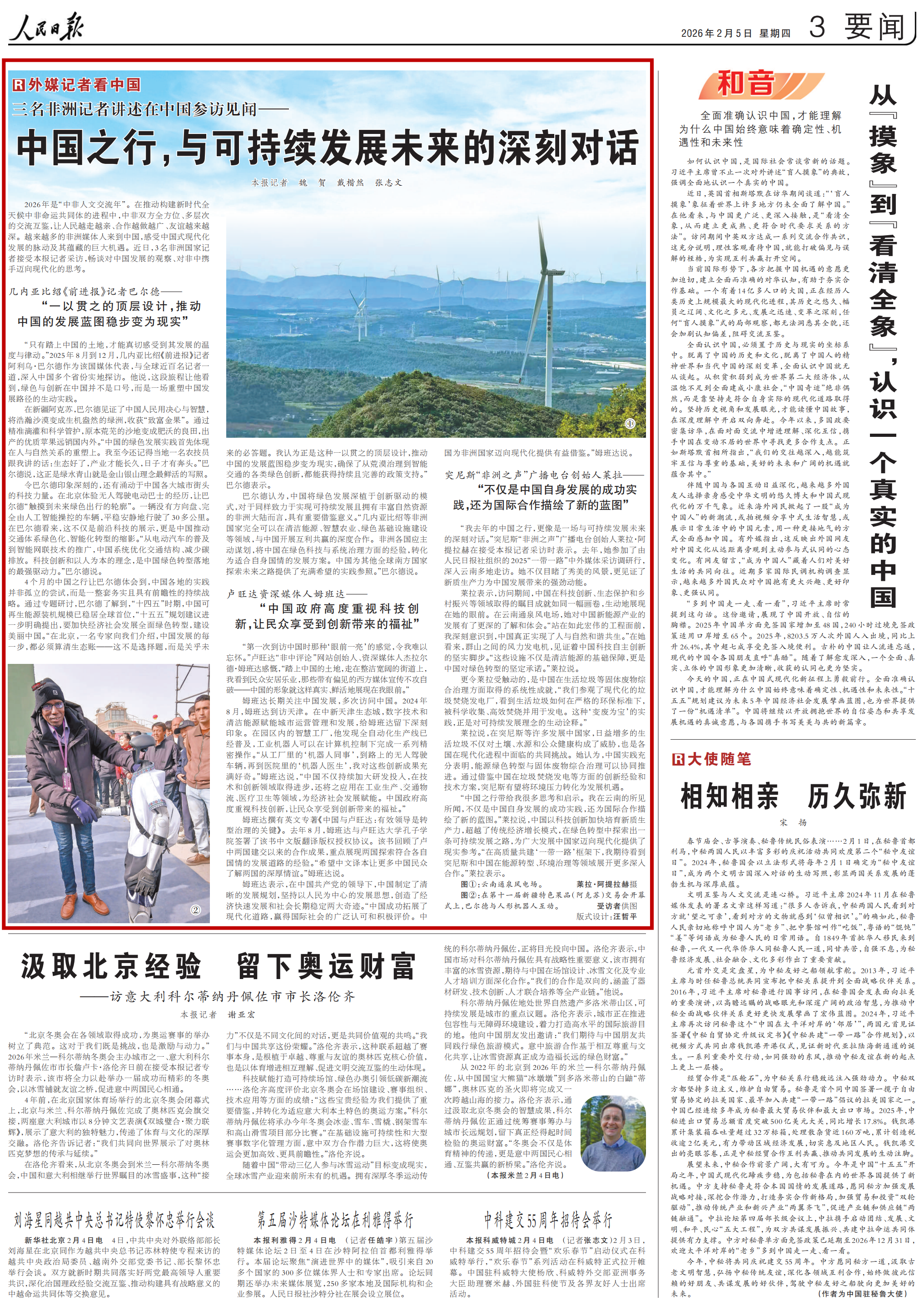 2026年是“中非人文交流年”。在推动构建新时代全天候中非命运共同体的进程中,中非双方全方位、多层次的交流互鉴,让人民越走越亲、合作越做越广、友谊越来越深。越来越多的非洲媒体人来到中国,感受中国式现代化发展的脉动及其蕴藏的巨大机遇。近日,3名非洲国家记者接受本报记者采访,畅谈对中国发展的观察、对非中携手迈向现代化的思考。