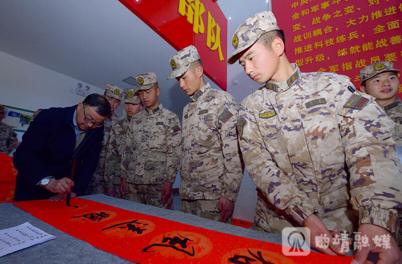 曲靖融媒讯(记者 陈泓洁 通讯员 任贵)春节将至,武警曲靖支队机关暖意融融、墨香四溢。驻地知名书法家在曲靖市文联“强基计划”2026年新春特别行动组织下走进军营,开展“写春联、送福字进部队”活动,为官兵现场创作春联福字,送上真挚的新春祝福,营造出浓厚的节日氛围。