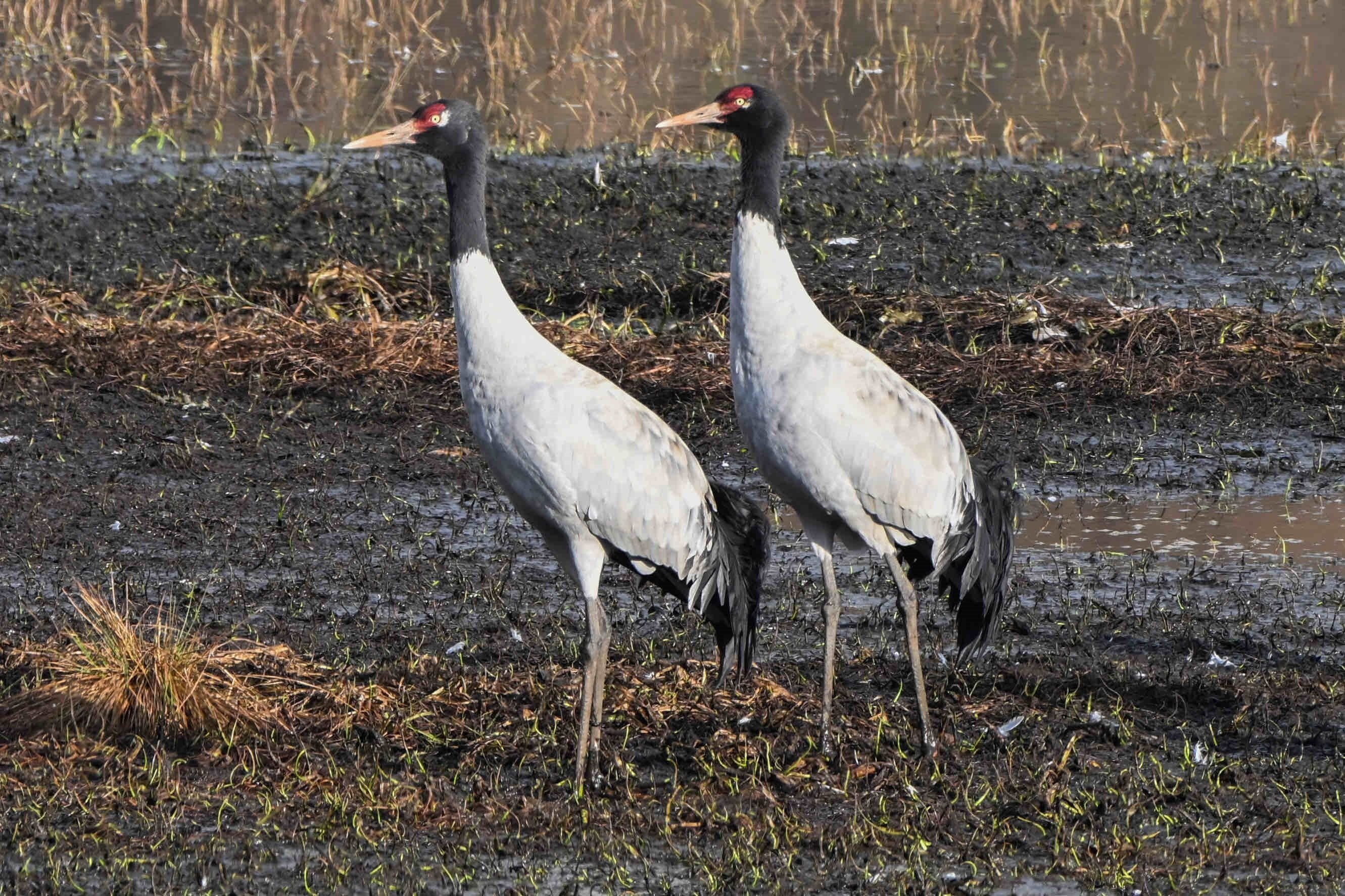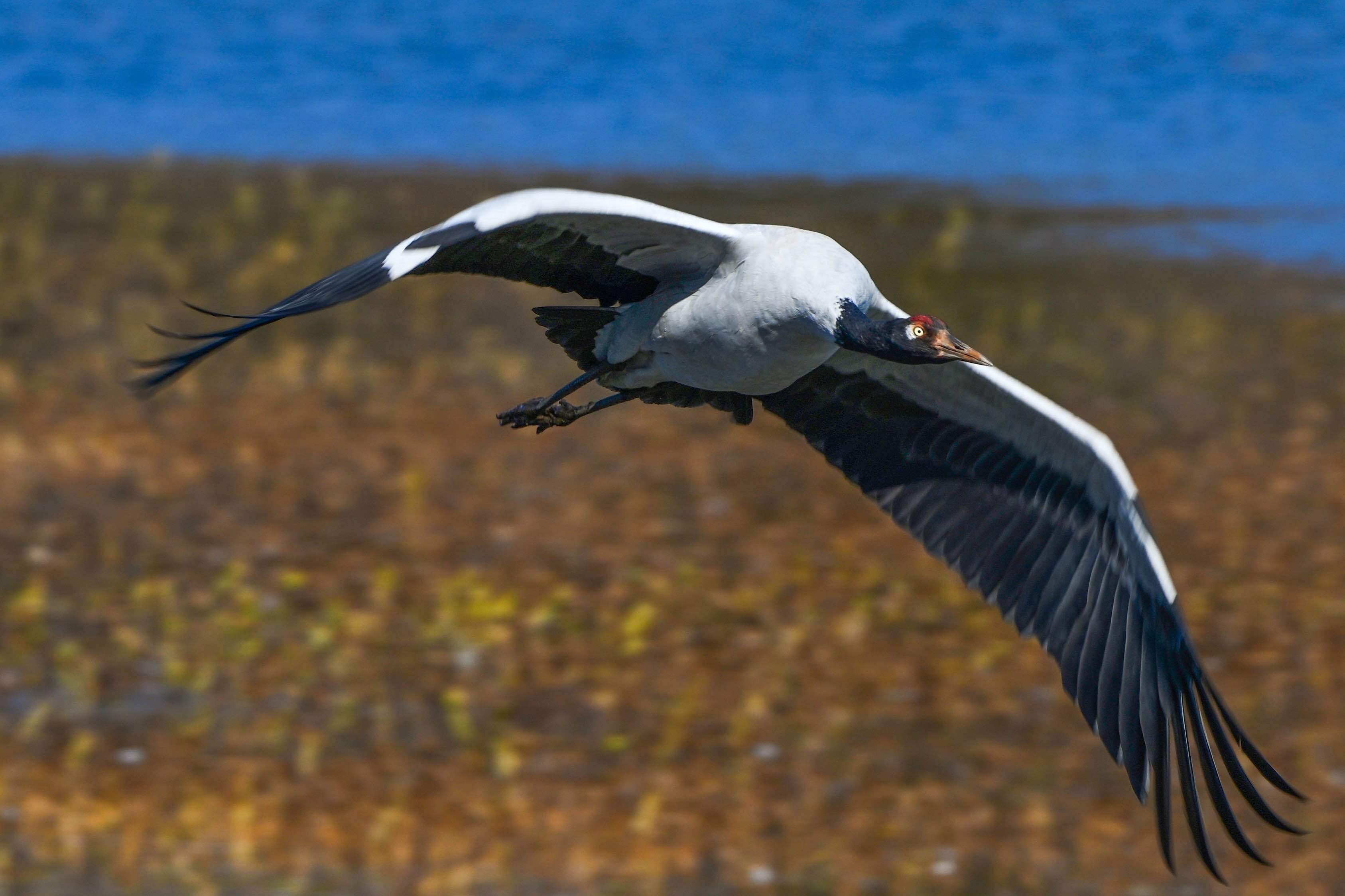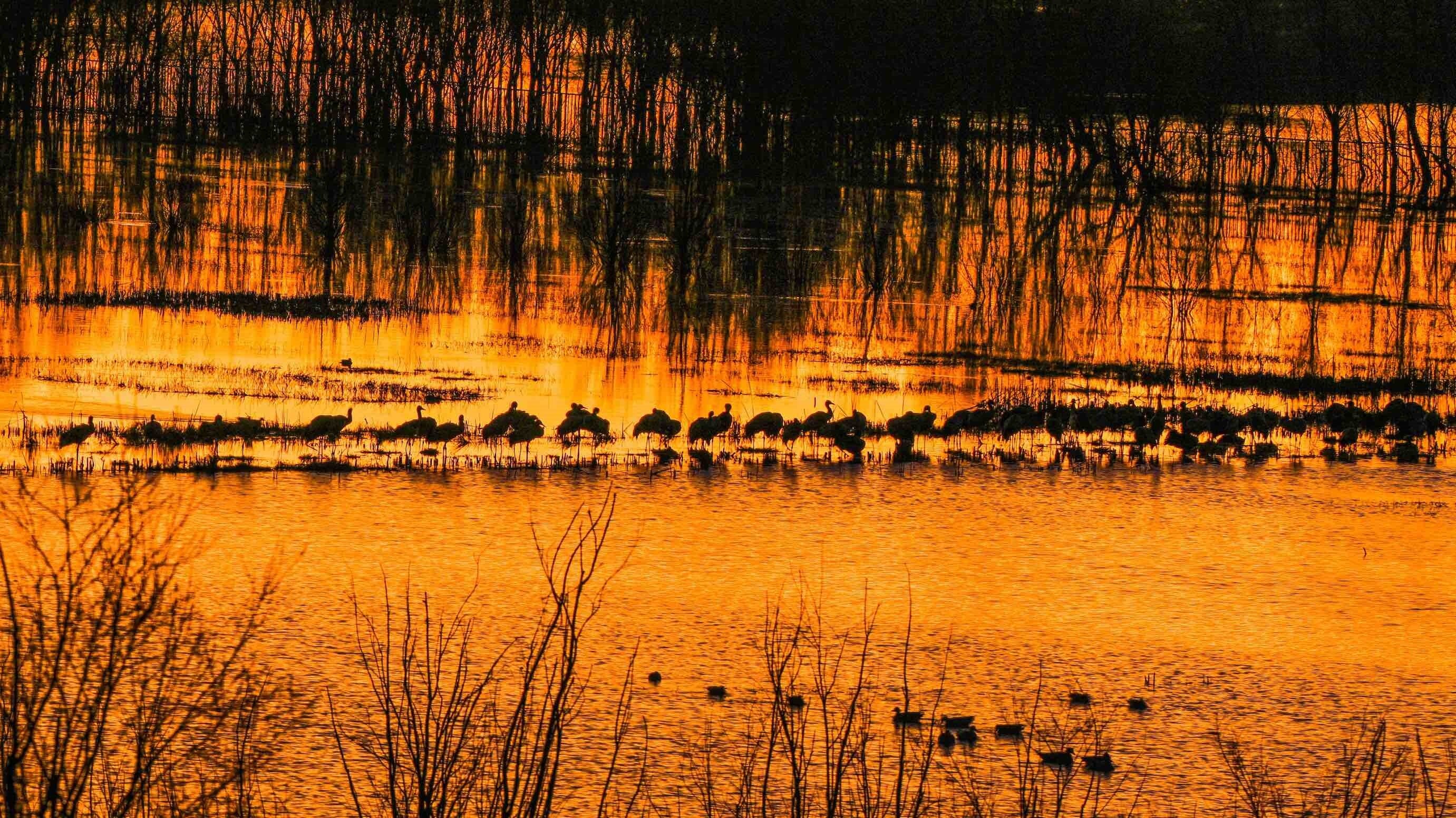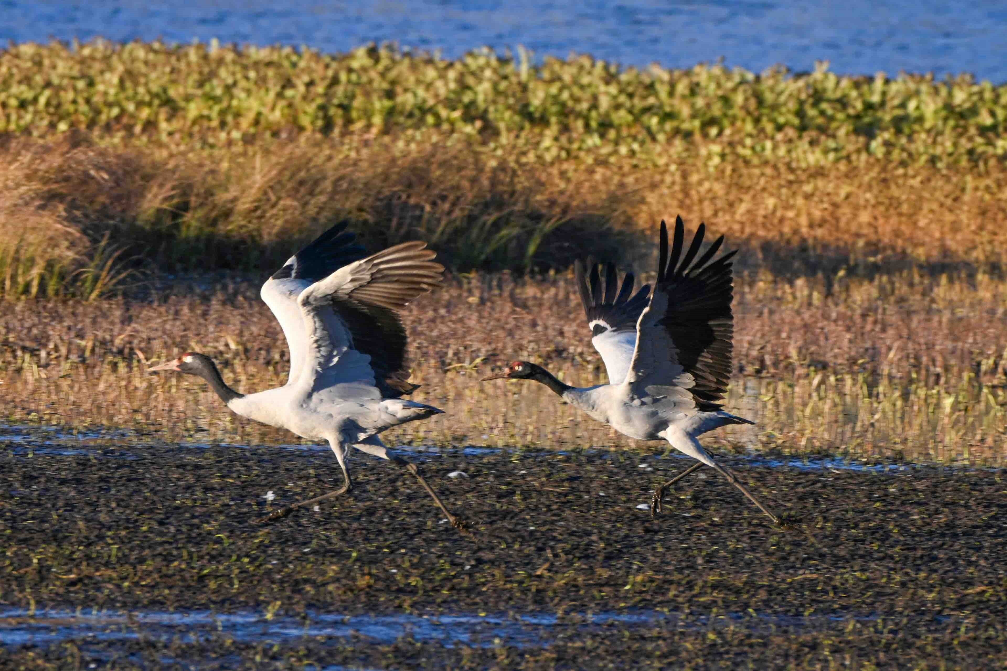 今年,位于云南省曲靖市会泽县的会泽黑颈鹤国家级自然保护区内,鹤类总数有所上升,达到1611只。念湖湿地内,越冬的黑颈鹤时而优雅踱步,时而振翅追逐,时而引颈长鸣,有的还展开双翼穿梭于云雾之间。