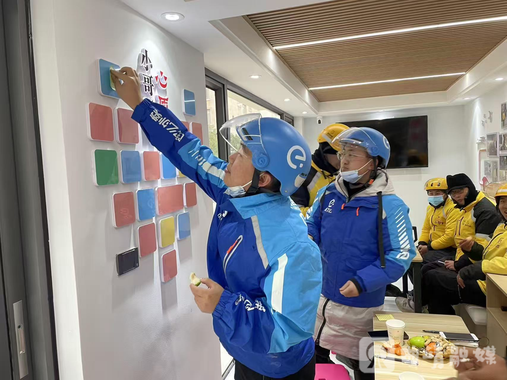 这个面积不足二十平方米的空间,不仅解决了大家“歇脚、充电、喝水、应急、储物”五大核心需求,更被赋予更深层的意义——驿站内专设党建知识“学习角”,定期开设“小哥课堂”,让党的创新理论以更接地气的方式走进新就业群体。小小的驿站,由此成为党建宣传的“微阵地”和思想教育的“加油站”。