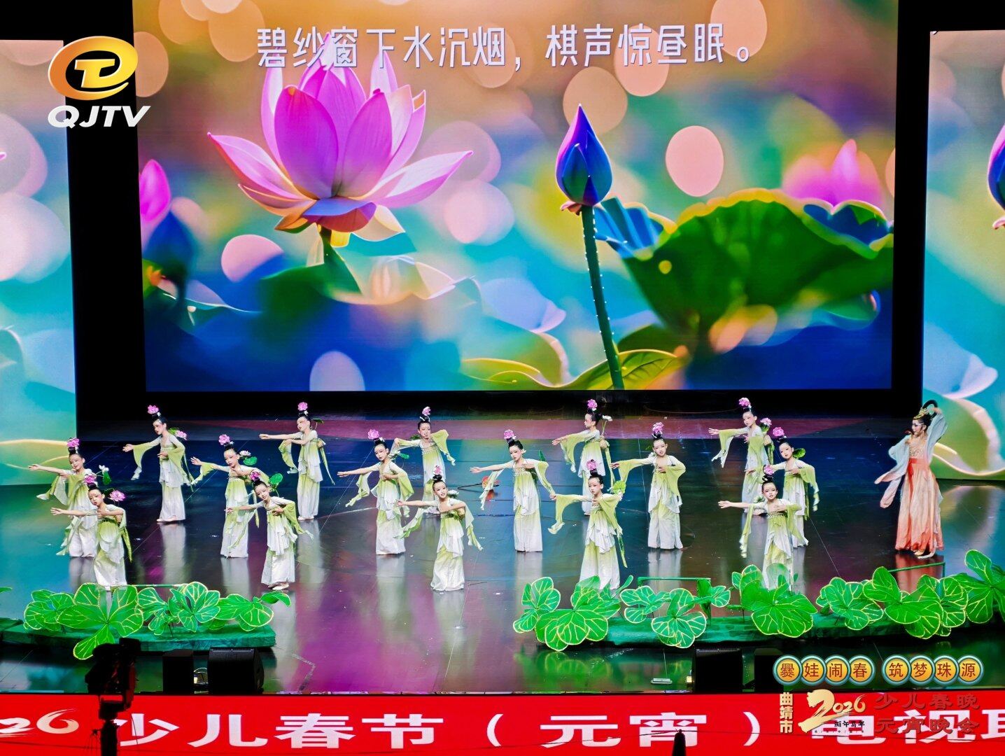 在今年的少儿春晚上,杭艺舞蹈带来的两个原创节目《麒麟池上・悠悠荷香》《鱼跃珠江・麒麟嬉》,凭借浓郁的曲靖地域风情、精湛的舞蹈演绎,收获了无数好评,成为晚会的“出圈之作”。