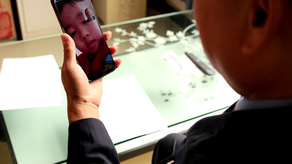 马站长与家人视频通话