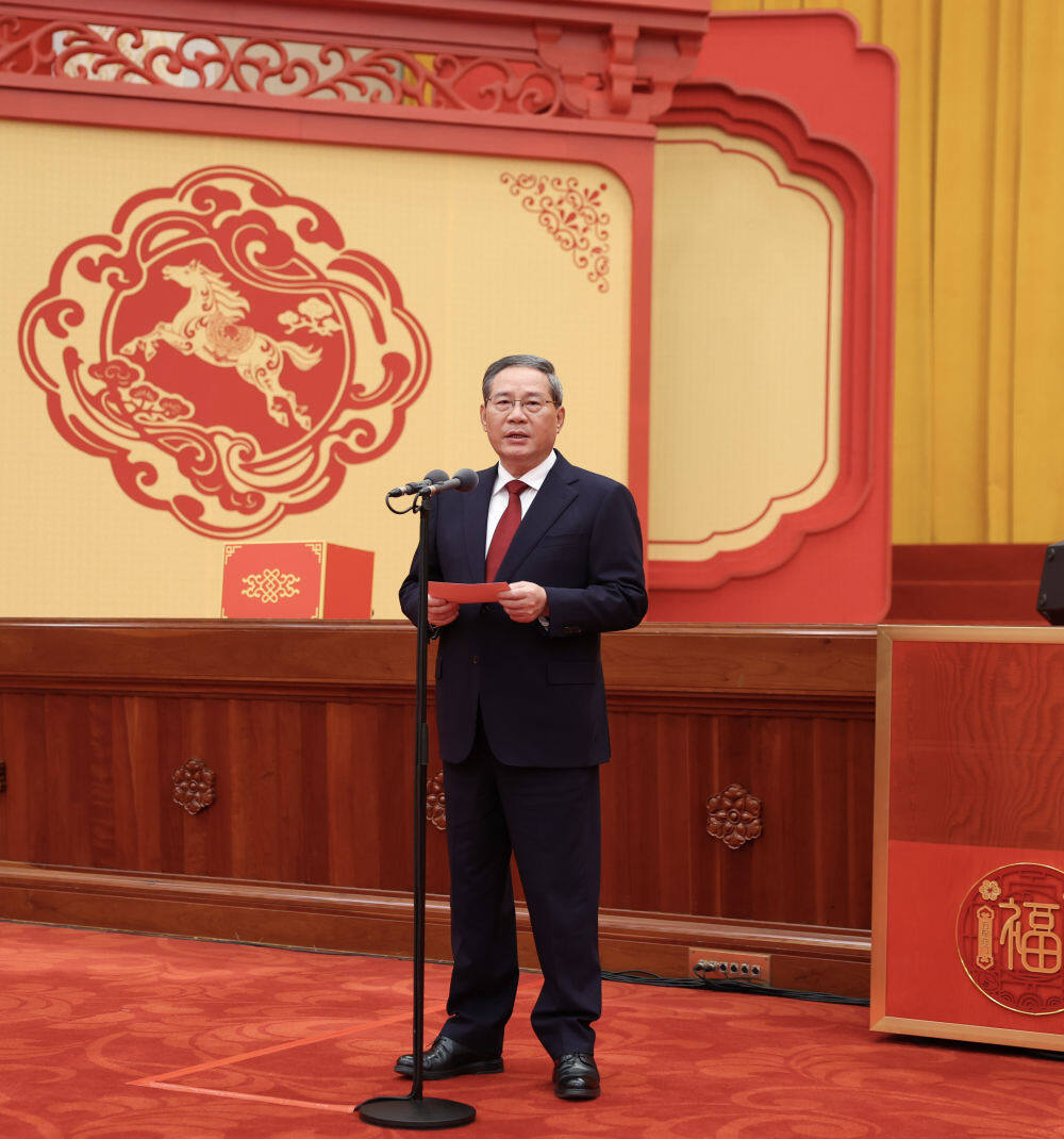 2月14日,中共中央、国务院在北京人民大会堂举行2026年春节团拜会。国务院总理李强主持团拜会。新华社记者 黄敬文 摄