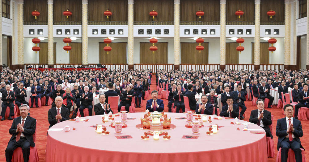 2月14日,中共中央、国务院在北京人民大会堂举行2026年春节团拜会。党和国家领导人习近平、李强、赵乐际、王沪宁、蔡奇、丁薛祥、李希、韩正等同首都各界人士欢聚一堂、共迎佳节。新华社记者 谢环驰 摄