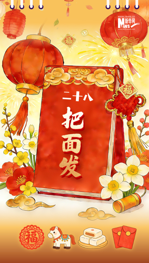 旧时,人们在腊月二十八这天发好面,准备初一到初五的主食,如今仍有一些家庭保留这一习俗。“八”与“发”谐音,人们希望面发得好,来年财源滚滚、财运亨通、招财进宝。