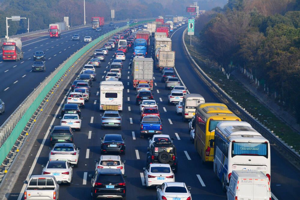 2026年2月13日拍摄的京沪高速江苏无锡段的车流。新华社发(还月亮 摄)