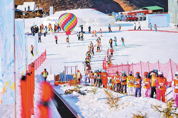 大众冰雪季启动仪式上,2025年全国滑雪登山锦标赛U16女子组个人短距离冠军徐许轩、U16男子组个人垂直竞速赛亚军李猛的亮相,瞬间点燃全场目光。他们不仅分享了汗水浇灌的成长故事与训练心得,更现场示范了滑雪重心控制的精妙技巧,为现场观众奉上了一堂干货满满的“冰雪公开课”。亲子戏雪区内,轮胎滑雪道上传来阵阵欢声笑语;雪地拔河、拉雪橇等趣味项目,则让大朋友、小朋友们全情投入,忘却寒冷,共享冰雪乐趣。