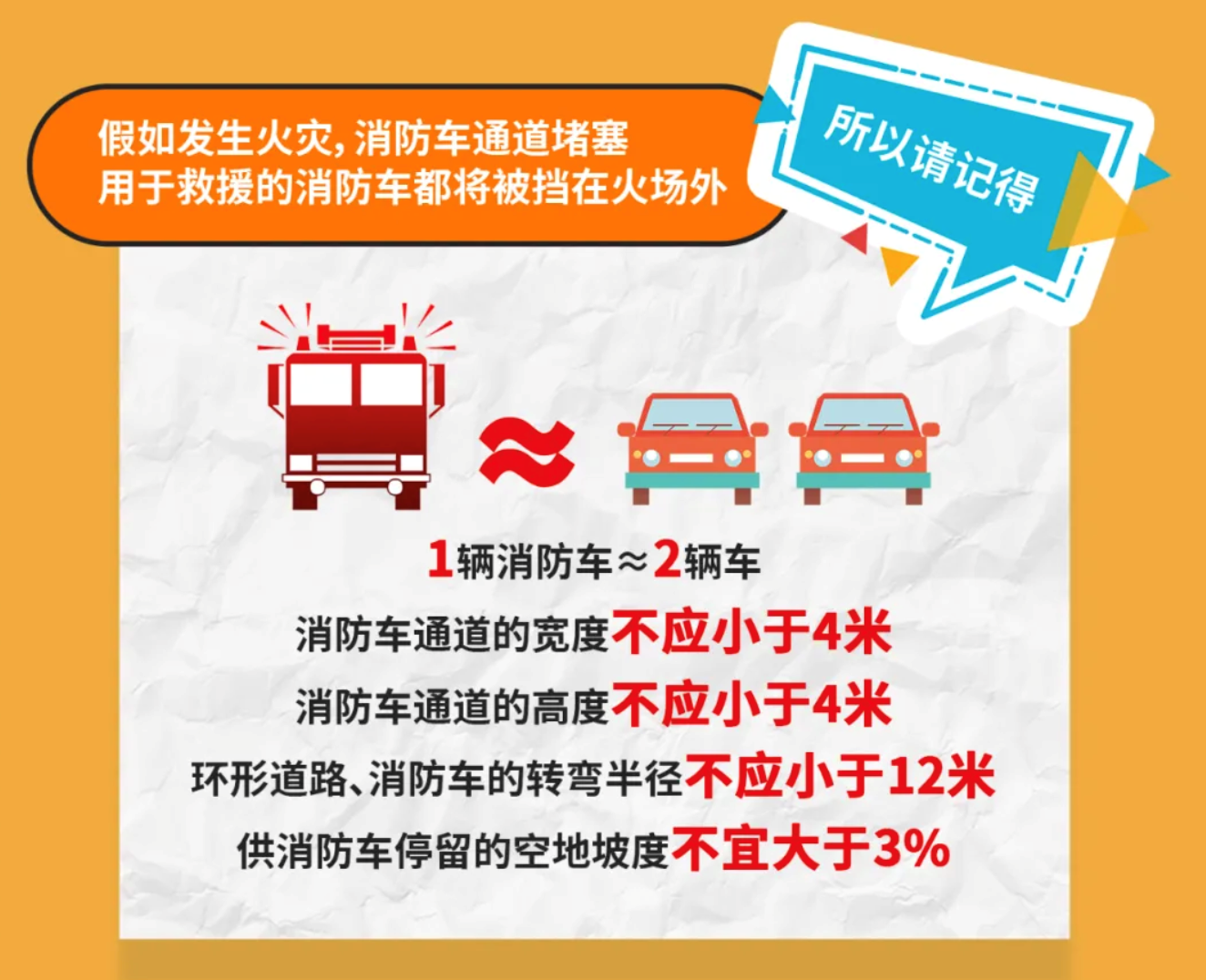 切勿让爱车堵住消防车通道