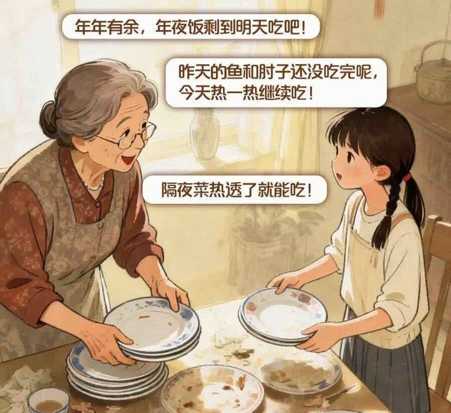 年夜饭剩到明天吃吧!”