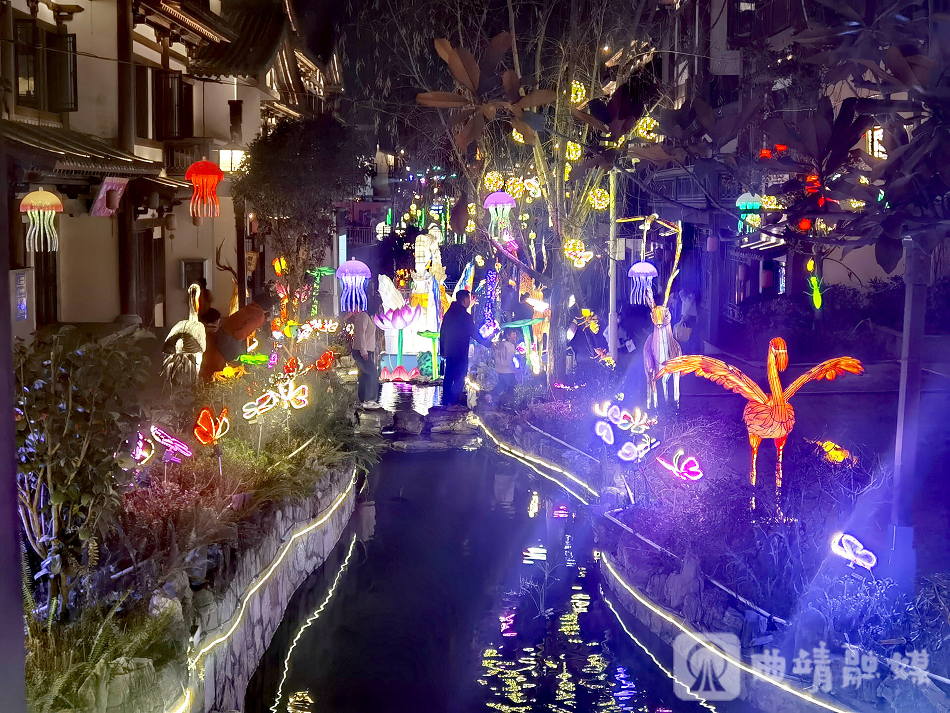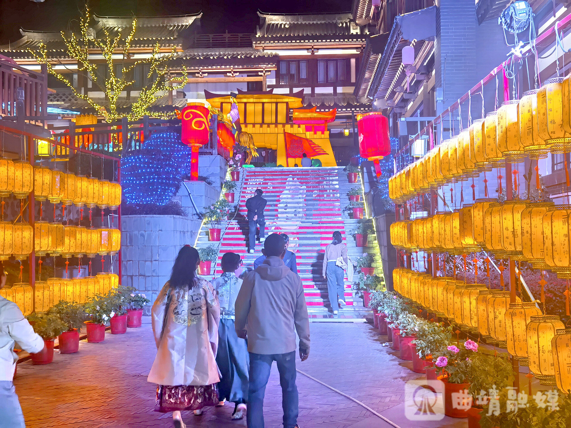 暮色四合,华灯初上,南中爨城即刻化身灯的海洋。步入灯会现场,错落有致的灯笼长廊红黄交织、暖意融融,一步一景尽显浓浓年味;昆虫动物世界主题灯组栩栩如生,借助灵动的动态光影技术,让各类造型在夜色中鲜活呈现,流光溢彩间,勾勒出“火树银花不夜天”的醉人景致。