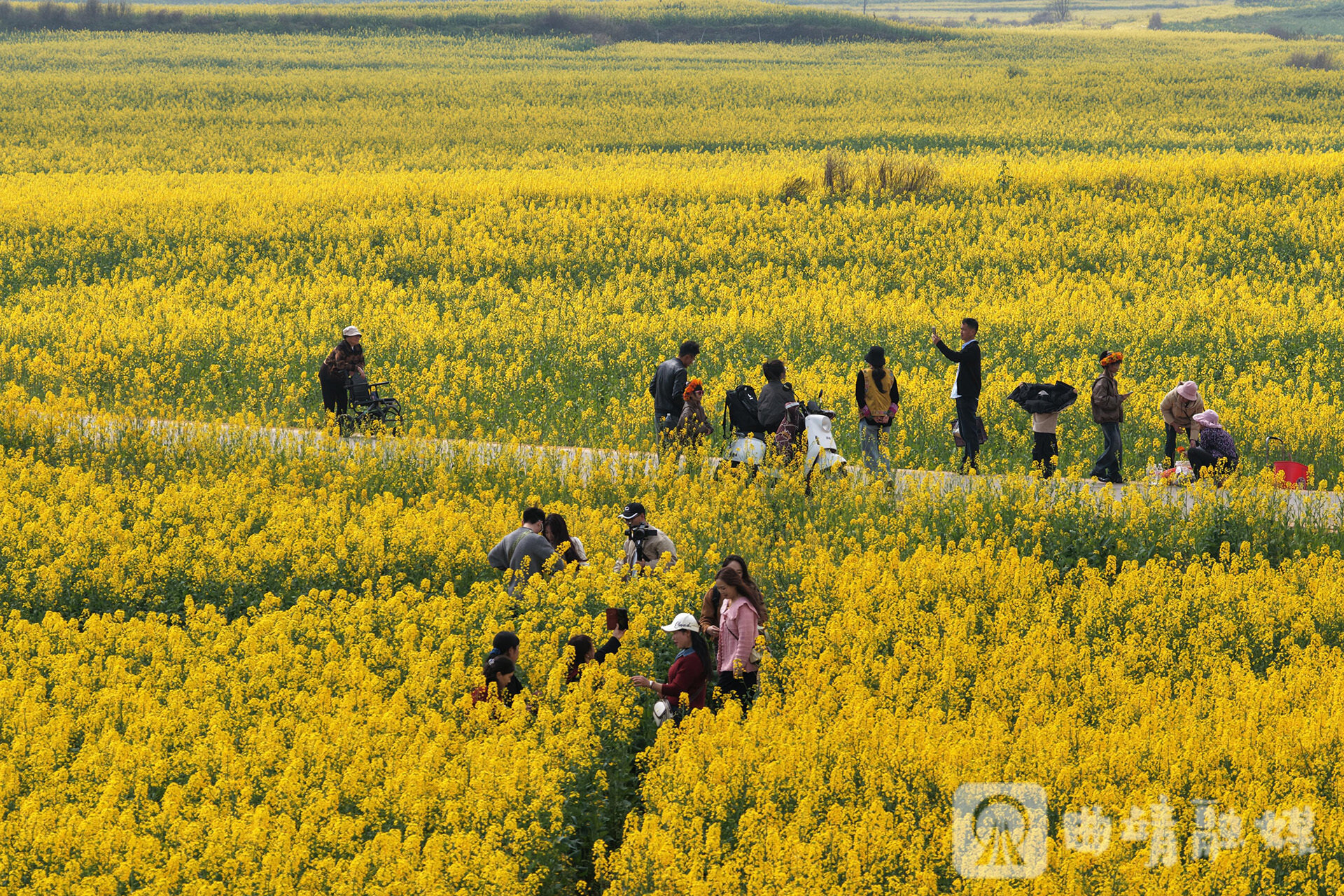 “下高速时就看到了大片油菜花田,特别壮观。”来自广西的潘银菲一家三口,大年初一晚上抵达罗平,她连连感叹“今早走进花田,阴雨蒙蒙中的油菜花更显柔美,令人陶醉。”