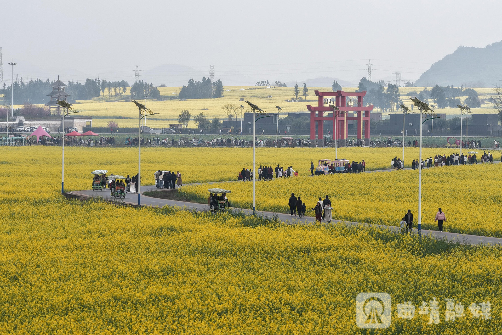 金马贺岁春意浓,花海迎春年味足。丙午马年新春,云南罗平近百万亩油菜花迎春绽放,金色花海与喀斯特峰丛相映成画,吸引全国各地游客慕名而来踏花赏景、欢度春节,该县各景区人头攒动,迎来春节旅游高峰。