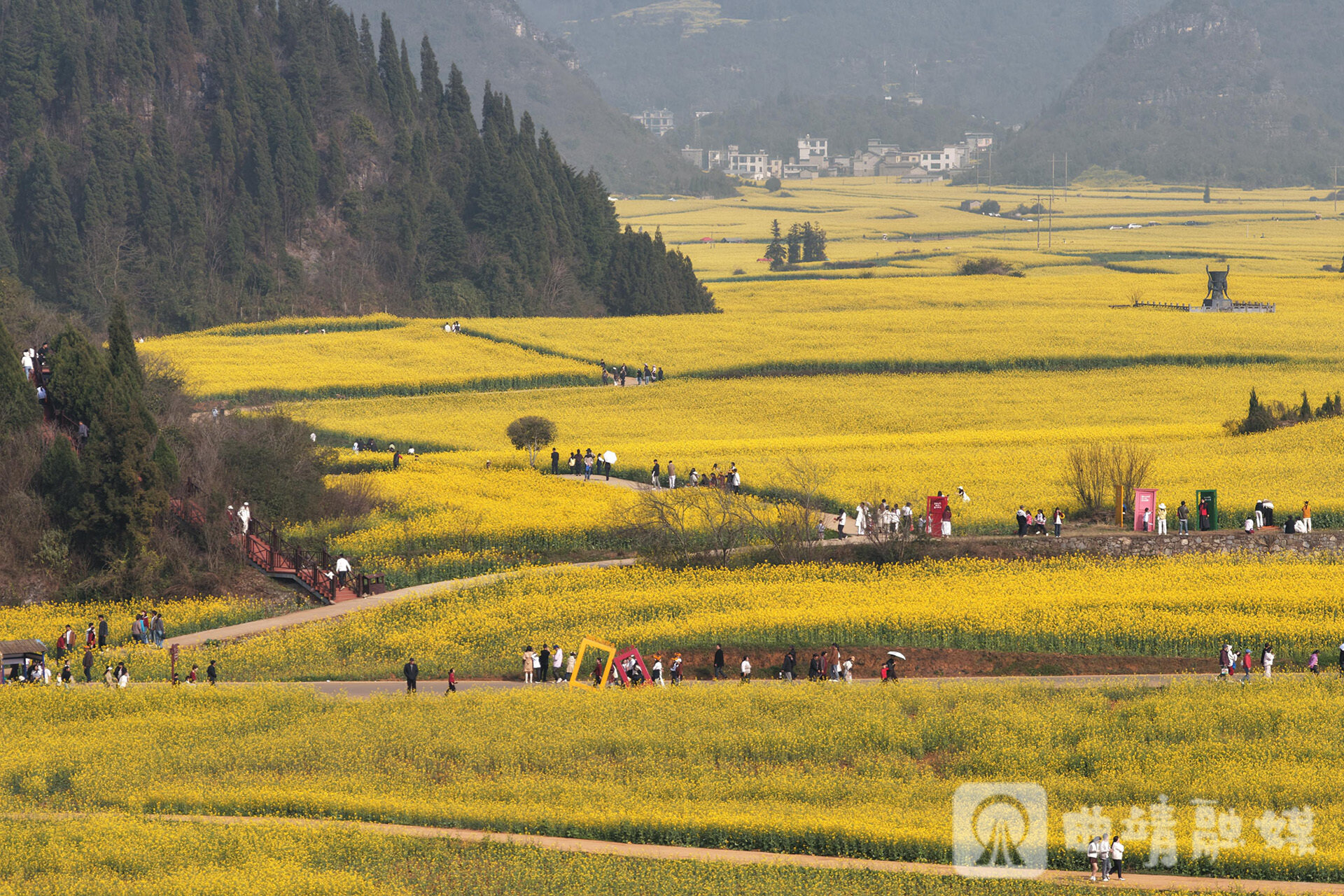 作为罗平花海的核心景区,金鸡峰丛迎来新春“开门红”,人流如织、暖意涌动,一派“花开正好、游人如潮”的热闹景象。“从大年初一开始,我们金鸡峰丛景区已经突破了一万人次。”景区工作人员江树斌介绍,游客主要来自重庆、四川、广东、广西等地。自驾游、家庭游成为主流,人们在花田间驻足观赏,在晨雾中拍照留念,赏花过年成为新春最火热的打开方式。