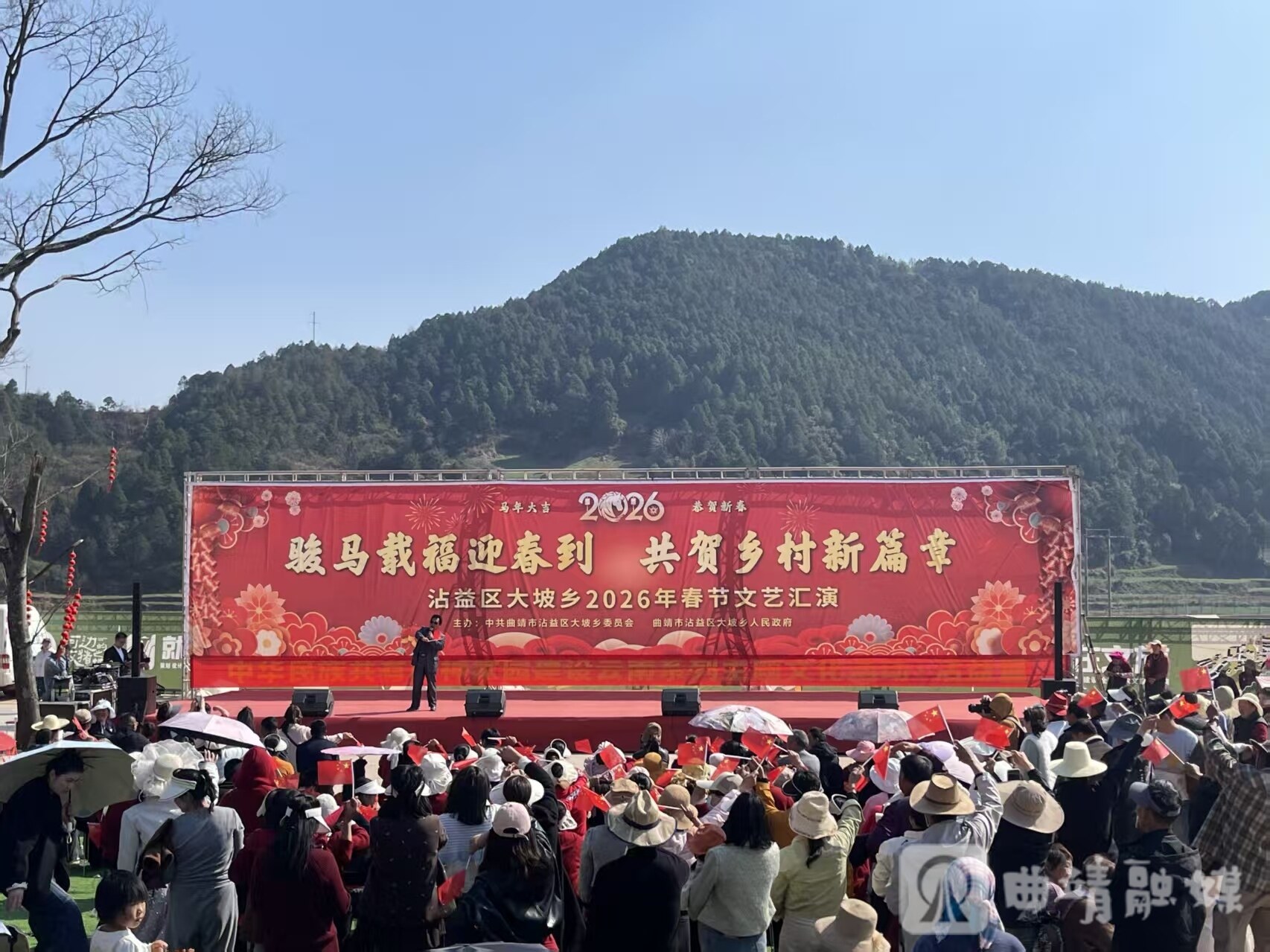 曲靖融媒讯 丙午马年,春意盎然。2月18日,沾益区大坡乡威格李家村锣鼓喧天、人头攒动,由大坡乡党委、政府主办的2026年“骏马载福迎春到 共贺乡村新篇章”春节文艺汇演精彩上演。十里八乡的乡亲们扶老携幼欢聚一堂,在家门口享受了一场充满年味、乡土味和时代感的“文化大餐”。