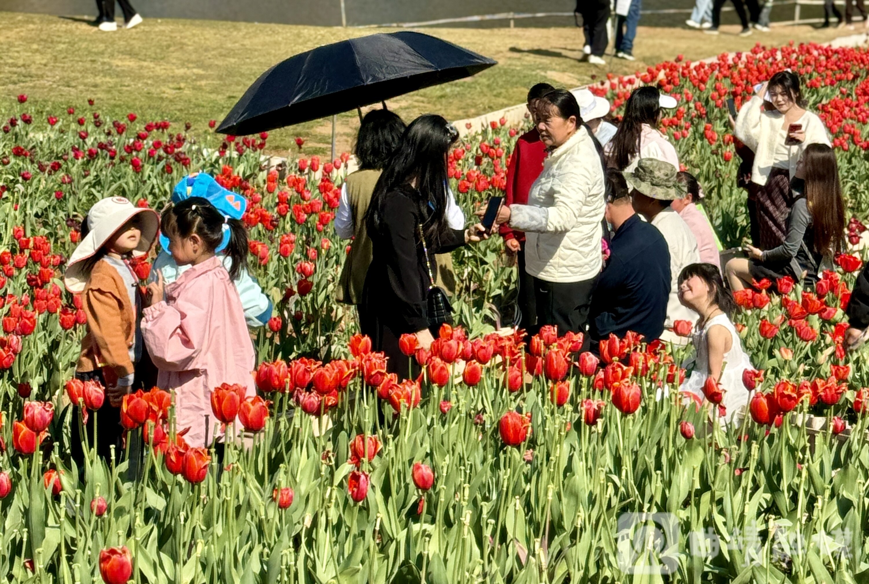 市民李女士带着孩子在花海中拍照,她笑着说:“过年就想带家人出来走走,这里郁金香开得特别漂亮,颜色丰富、景色出片,孩子玩得很开心,年味和春意都感受到了。”市民张先生和妻子专程前来打卡,他说:“今年花开得早,浪漫又喜庆。春节在花海里过节,心情特别好,也祝大家新的一年像花儿一样美好。”