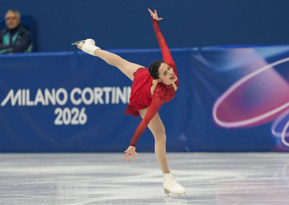 2月8日,加拿大选手马德琳·希扎斯在花样滑冰团体赛女单自由滑比赛中伴随着小提琴协奏曲《梁祝》的旋律比赛。新华社记者 薛宇舸 摄