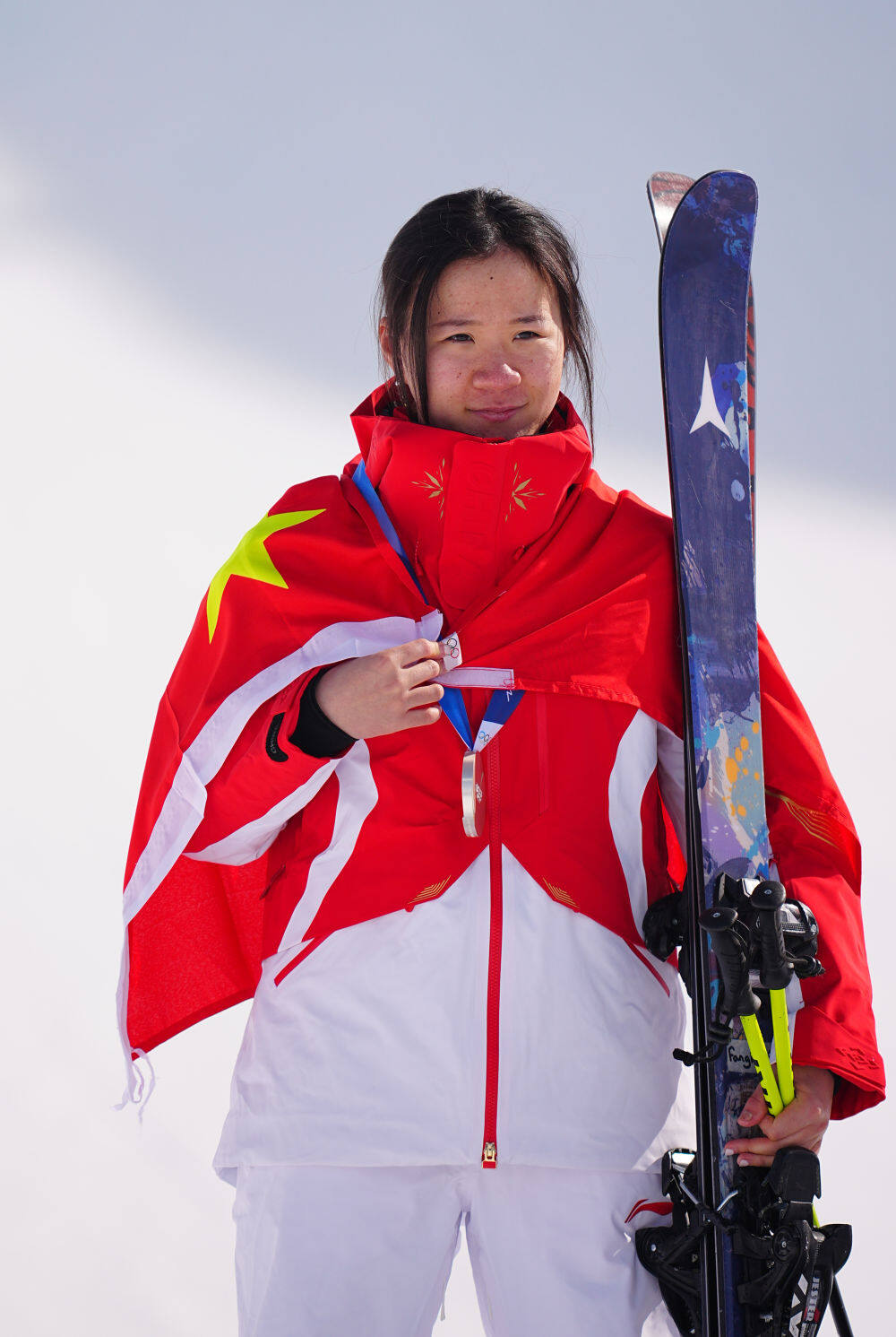 2月22日,亚军中国选手李方慧在自由式滑雪女子U型场地技巧颁奖仪式上。新华社记者 胡超 摄